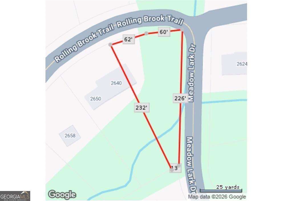 Prime corner lot opportunity in East Point! This approximately 0.39-acre residential lot is ideally positioned at the intersection of Rolling Brook Trail and Meadow Lark Drive, offering excellent visibility, flexibility, and a standout homesite within an established neighborhood. The lot is generally level with public water and sewer available, making it well-suited for new construction. A major highlight of this property is its natural rear setting-backing to North Fork Camp Creek, providing a peaceful wooded backdrop and added privacy that is hard to find on in-town lots. This unique feature enhances both the setting and long-term appeal for buyers looking to build a home with character and a connection to nature. Conveniently located just minutes from Hartsfield-Jackson Atlanta International Airport, Downtown Atlanta, and major highways, this property combines accessibility with neighborhood charm and future growth potential. Zoned R1. Buyer to verify zoning, floodplain, stream buffer requirements, and building plans.