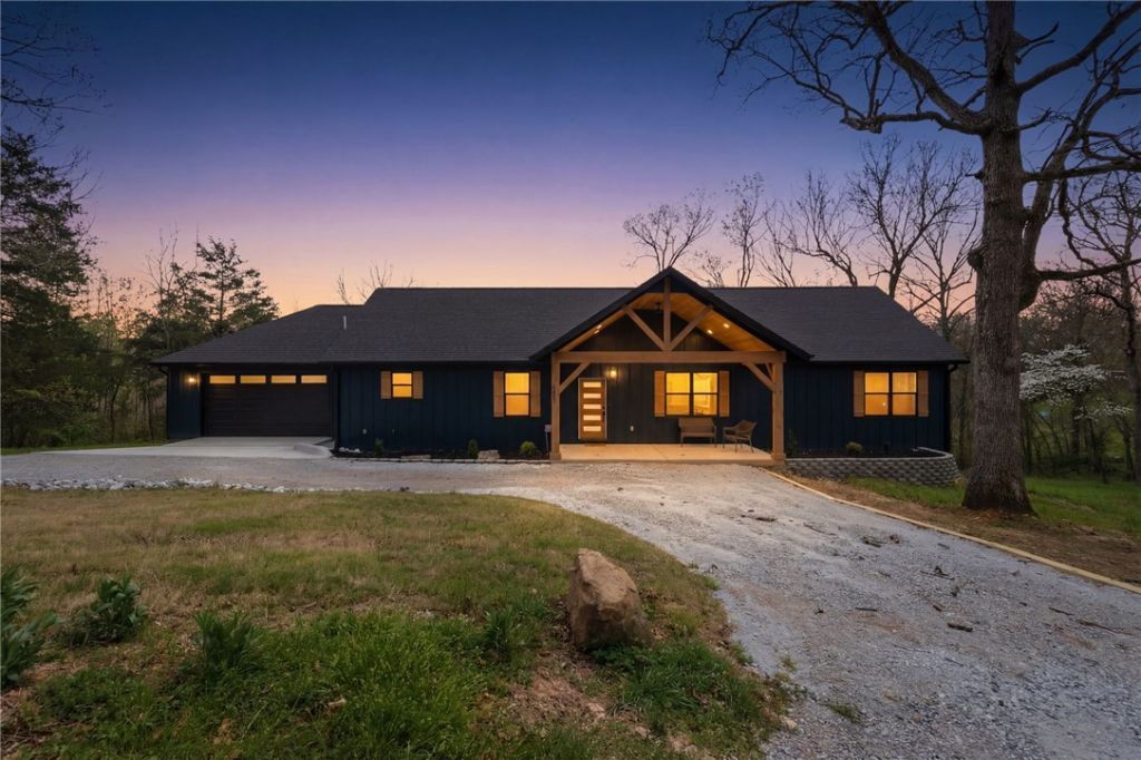 Goshen ? New Construction on 1.39 Acres. No Covenants. Small town feel, Vandergriff schools, 15 min to downtown Fayetteville. This is the lot that's hard to find in NWA anymore ? over an acre, no HOA, no covenants. Do what you want with it. Garden, shop, chicken coop. All of it. Inside: vaulted ceilings, LVP throughout, gas fireplace with wood mantle, and windows that actually earn their keep. Kitchen has a large island, granite tops, custom hood vent, pantry, and real counter space. Primary suite overlooks wooded views with a barn door entry, dual vanities, walk-in shower with dual fixtures, and a large WIC. Two guest rooms share a Jack and Jill bath. Office, laundry/mudroom with serious storage, and a big deck out back. New construction. Privacy. Room to breathe.