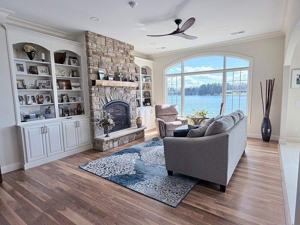 Custom lakefront home with high-end finishes + meticulous maintenance. Beautiful, spacious property located on pristine spring-fed lake (electric motor only), this property offers peaceful waterfront living with breathtaking sunrise + sunset views. Expans