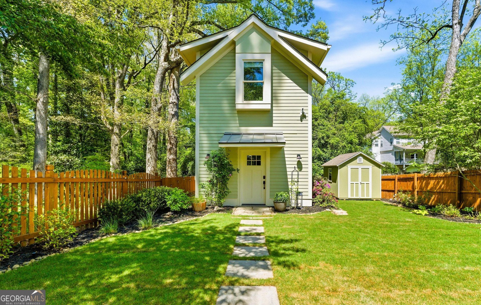 A rare unicorn estate in the heart of Decatur featuring two separate homes, this 2012 built sanctuary at 104 Fairview St invites a lifestyle of unparalleled versatility and sophistication. Perfectly positioned bordering a serene 2-acre nature preserve, this property combines a masterfully updated main residence with a fully permitted, legal 750+ square foot, two-story guest house-a true scarcity in the Decatur market. MAIN RESIDENCE: REFINED ELEGANCE Every inch of the main home has been thoughtfully curated with high-end finishes and modern infrastructure. The centerpiece is the stunning 2024 kitchen renovation, featuring exquisite Oro Gold quartz countertops and a large slab island designed for entertaining. The chef's space is equipped with a premium farmhouse-style sink, designer lighting, Bosch/Samsung appliances, and tile backsplash. Newly added windows in the kitchen bring in even more natural light, highlighting the freshly refinished original oak hardwood floors (2026). The inviting living room features a new tile fireplace surround and matching wall sconces (2025). Both full bathrooms on the main floor have been updated with quartz countertops and new fixtures. Modern conveniences abound, including a Samsung refrigerator and washer/dryer set, custom living room roller shades, and Level 2 Tesla charging (2025) located conveniently at the driveway. GUEST HOUSE: A LEGAL ADU MASTERPIECE The fully permitted, 750+ square foot guest house is a stand-alone, two-story dwelling that provides endless possibilities as a premium rental, a sophisticated home office, or a multi-generational suite. Converted in 2021, this structure features a first-floor bedroom with four closets, an interior staircase leading to a spacious second level with kitchen/living areas and separate bath/laundry room, and engineered hardwood floors throughout. The unit is climate-controlled via a dedicated mini-split HVAC system. OUTDOOR SANCTUARY Both the main house and guest house feature views overlooking the 2-acre Glenn Creek Nature Preserve. The exterior of the estate is an extension of the interior luxury, designed for low-maintenance beauty and privacy. A new pervious paver stone patio (2021) and large stone pathways connect the home to the side and back yards, all enclosed by decorative cedar fencing. Entry from the front yard to the side yard is anchored by a custom oval-arched gate draped in climbing Hydrangea and Jasmine vines. KEY FEATURES & UPGRADES: * Permitted ADU: 750+ SF, 2-Story, 1 BR/1 BA, engineered hardwood floors, ample storage, and interior staircase. * Kitchen (2024): Oro Gold Quartz, large kitchen island, Bosch/Samsung appliances, new windows above cabinets * Infrastructure: Level 2 Tesla Charger, Rainbird Irrigation system, New Pervious Paver Patio, New Storage Shed * Turnkey (2026): Fully refinished hardwoods, new interior/exterior paint, new Zoysia sod. * Systems: Geothermal HVAC system to promote reduced energy costs and lower carbon footprint, Metal Roof on Main House, Sprayfoam Attic Insulation * Parking: Ample driveway and street parking in a quiet, walkable enclave. This property is a masterclass in functional luxury, offering the rare combination of a turnkey primary home and a high-value income or lifestyle asset. Enjoy the peace of a nature-bordering lot while remaining minutes from the vibrant shops, dining, and award-winning schools of City of Decatur. Experience the full scal