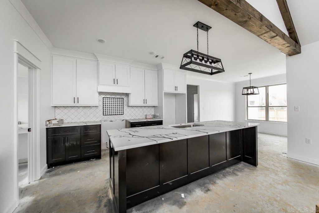 New construction home welcoming you in with a stunning stained beam in the large living room/kitchen and dining area. Butler's panty(butcher block countertops) & an amazing Costco door. Electric fireplace w/a live edge mantle, covered front porch & back patio. Added privacy with tree line at rear of property. Primary bedroom is enormous, bathroom has a large walk in tiled shower, double vanities and free standing tub, 11x8 closet with access to huge laundry room(hanging area & lots of storage) Extra bedrooms are all 12x12 in size. Ample storage throughout. Oversized garage with floored attic storage. ***** Pictures are of a model home and home will be finished out similar to one in pics, this home will have white brick and black trim for accents. *****Please call agent for more details