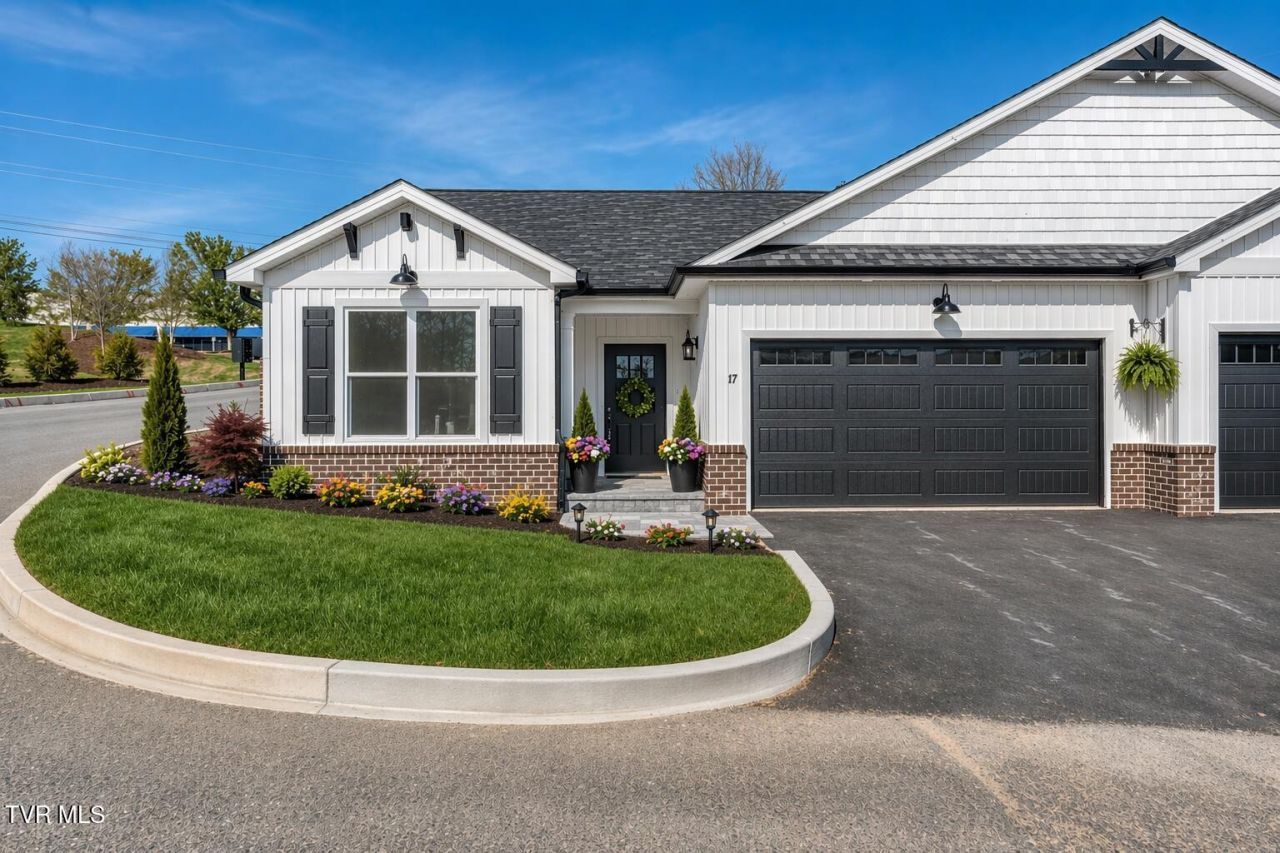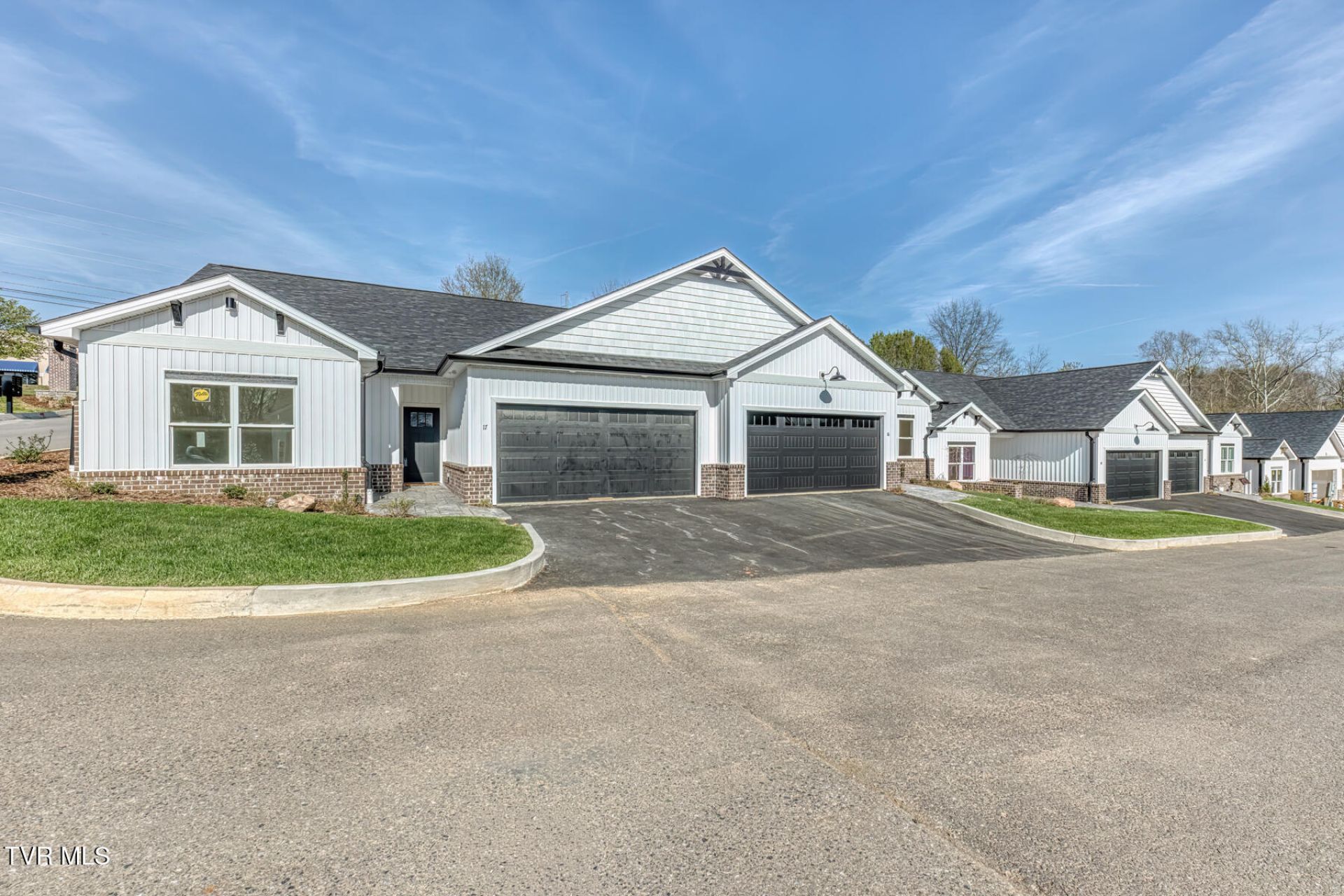 New construction! One level living with many custom details from the moment you arrive. Stamped concrete welcomes you to Unit 17! Inside you'll find details like wainscoting, tray ceilings, vaulted living room with brick fireplace and gas logs, beautiful kitchen with granite countertops, stainless appliances, and dining room which leads to large covered patio. The primary bedroom has a feature wall and tray ceiling. The primary bath has a double vanity, tiled shower and large walk in closet. For added convenience, the primary bath joins the laundry room. Two additional bedrooms share a hall bath. Tankless hot water heater, 2 car garage and much more. $150 per month HOA fee covers the common areas, including lawn maintenance and future garbage. Excellent location just 8/10 mile from I-26, in North Johnson City off Boones Creek Road. One year builder's warranty. Owner is a relative.