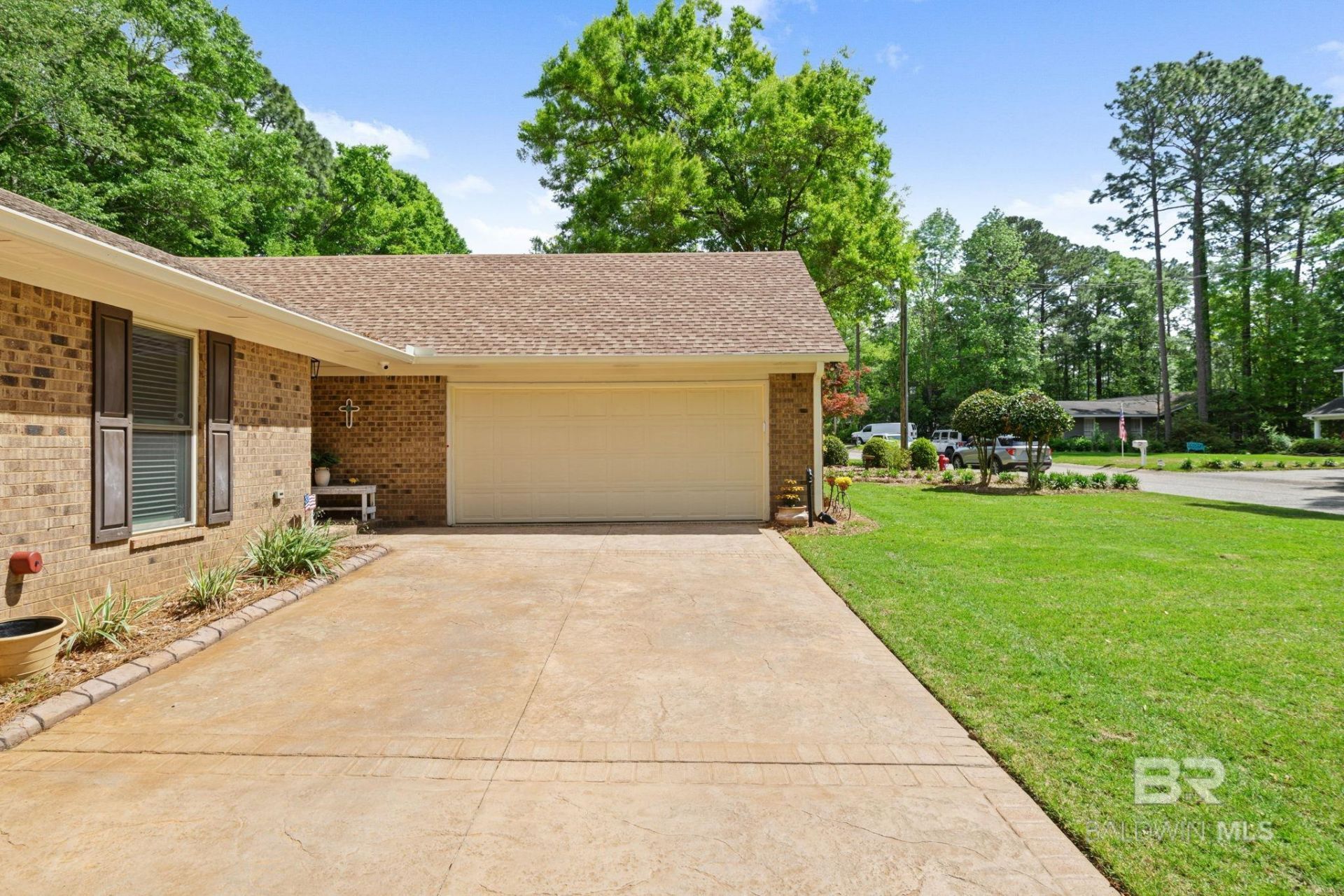 Welcome to your hidden gem on the 12th hole of the Lake Forest Golf Course in Daphne! This beautifully updated 3-bedroom, 2-bath home offers the perfect blend of modern upgrades and serene golf course living. Step inside to discover smooth ceilings, updated crown and base molding, fresh interior paint, and new luxury vinyl plank flooring throughout. The fully renovated kitchen features new cabinetry, granite countertops, stylish backsplash, and updated lighting?perfect for both everyday living and entertaining. The spacious primary suite includes a spa-like bathroom with a relaxing tub and a newly designed walk-in closet. Additional upgrades include new interior doors, ceiling fans, attic steps, and a newly added pantry for extra storage. Enjoy peace of mind with a 2021 HVAC system and an active termite bond. Outside, the home continues to impress with a new driveway, coated garage floor, and a pergola overlooking the aluminum-fenced backyard?ideal for relaxing or hosting guests with golf course views. Move-in ready and packed with upgrades, this home is truly a must-see! Buyer to verify all information during due diligence.