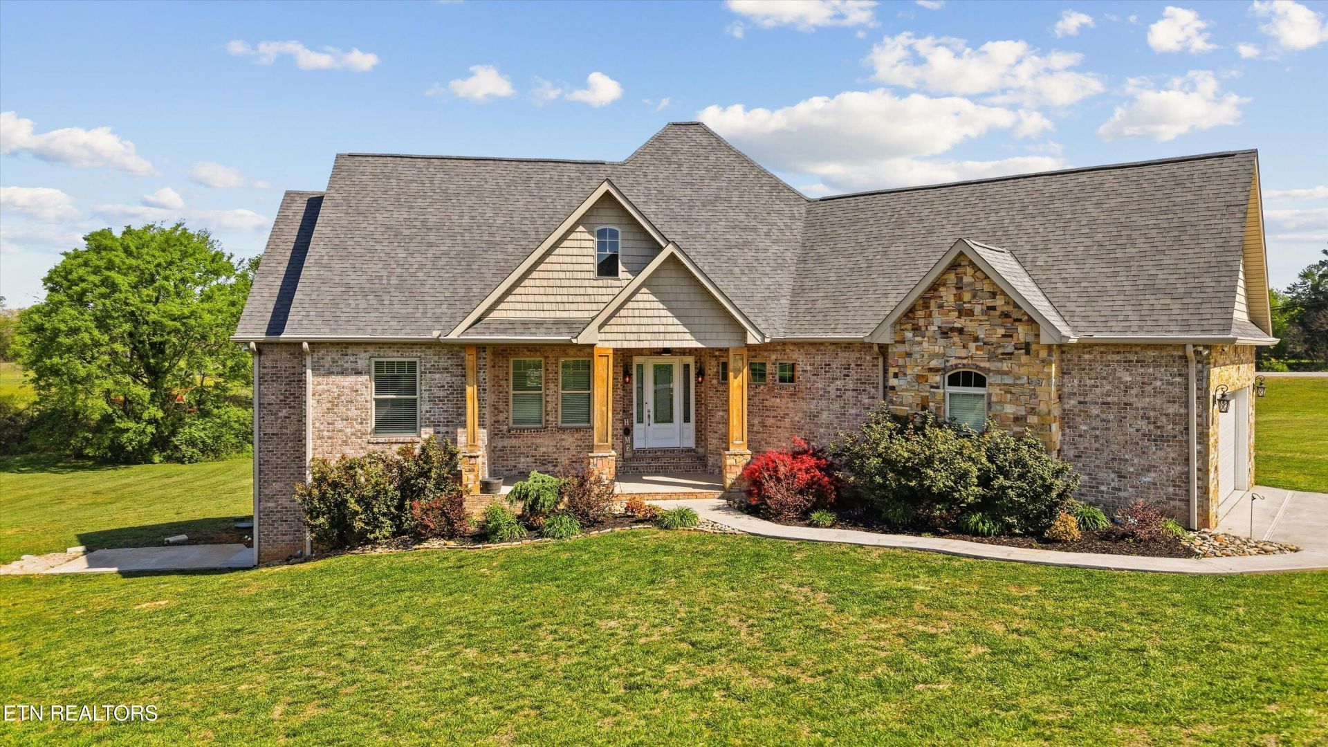 Welcome to a beautifully crafted custom brick and stone home perfectly situated on 1.35 acres just outside downtown Madisonville. This thoughtfully designed residence offers 2,440 square feet of finished living space plus a full walk-out basement, providing plenty of room for comfortable living today and possibilities for future expansion. The spacious main level features three bedrooms, two full bathrooms, a half bath, a dedicated office, and a warm and inviting living room with a fireplace. Large windows and an open flow create a welcoming atmosphere ideal for both everyday living and entertaining. The kitchen is designed for both function and style, offering stainless steel appliances, granite countertops, and a beautiful backsplash that complements the custom cabinetry. Whether preparing family meals or hosting guests, this space serves as the heart of the home. Upstairs, a large bonus room provides flexible space for a media room, playroom, guest retreat, or additional workspace. Outdoor living is just as impressive. A covered front porch welcomes you home, while the large covered back deck with tongue-and-groove ceiling creates the perfect setting for relaxing and enjoying the peaceful surroundings. Stairs lead down to the backyard and expansive property. The full walk-out basement already includes a finished bathroom with shower, making it an ideal starting point for future living space, recreation areas, or additional bedrooms. Additional features include a main-level attached garage, generous storage, and a location that offers the perfect balance of quiet country living while still being just minutes from downtown Madisonville, shopping, dining, and recreation. This home offers space, quality construction, and room to grow - a rare opportunity in a desirable Madisonville location.