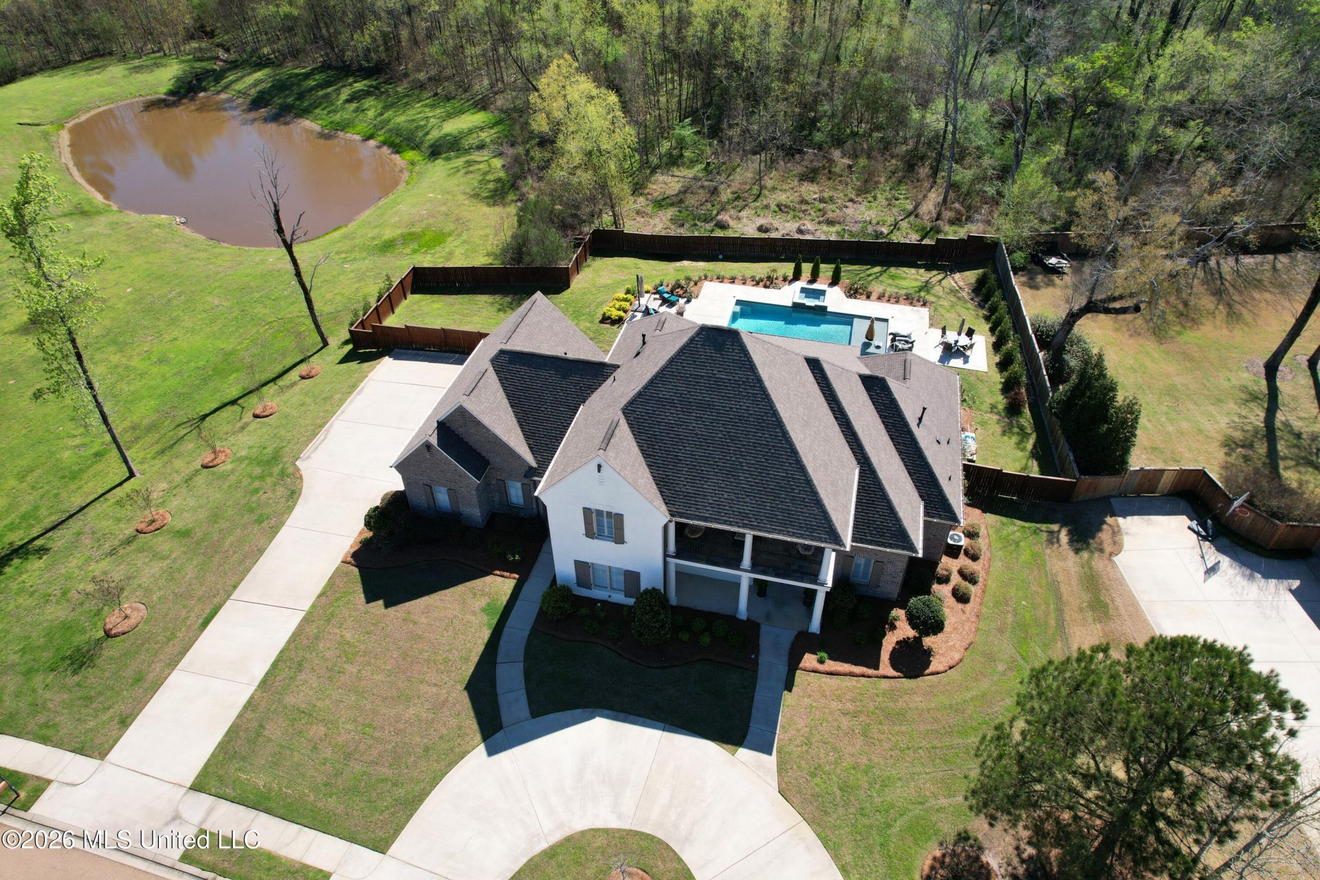 Experience luxury and privacy in this stunning custom built estate near Lost Rabbit, one of Madison's premier waterfront communities. Built in 2018, this two-story home offers over 4,600 sq ft of thoughtfully designed living space with 5 bedrooms and 4 full baths.The spacious primary suite features a cozy fireplace and a spa like bath with dual toilet stalls for added comfort and functionality. Designed for both everyday living and entertaining, the home includes covered outdoor patios, an outdoor kitchen, and a pool overlooking a peaceful pond view.A separate 800 sq ft guest house provides the perfect space for visitors. With four fireplaces throughout, including in the primary bedroom and on the back porch, the home offers warmth and elegance in every space.Situated near a quiet cul-de-sac, the property stands out with exceptional privacy surrounded by mature trees an uncommon feature in this community.A rare opportunity to own a private, luxury retreat in one of Madison's most desirable communities.