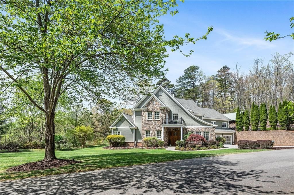 Perched atop the scenic rise of Red Top Mountain, just 35 minutes north of Atlanta, 12 Horizon Trail presents a refined, resort-inspired retreat where mountain vistas and timeless design converge. Custom built in 2005, the residence reflects a European-inflected Craftsman sensibility, pairing artisanal detail with enduring materials. A gracious entry unfolds into beautifully proportioned interiors, where rich hardwood floors are complemented by accents of travertine tile. Designed with both elegance and ease in mind, the home features four bedrooms and three-and-a-half baths, anchored by a thoughtfully appointed main-level primary suite. The kitchen serves as the heart of the home an inviting, custom space centered around a striking brick hearth framing the gas cooktop as well as artisan style custom cabinetry. An adjacent breakfast area offers relaxed dining, while a separate formal dining room comfortably accommodates gatherings of twelve. Throughout, a soft, neutral palette enhances the home's light-filled ambiance. The primary suite is a private sanctuary, opening to views of the pool and terrace beyond. Its spa-like bath has been tastefully updated, accompanied by a generous walk-in closet and a morning bar where you can take your morning coffee out to the terrace and enjoy the sounds of nature. A luminous sunroom further elevates the main level, seamlessly blending indoor and outdoor living and offering an idyllic setting for both entertaining and everyday moments. Upstairs, three well-appointed bedrooms are joined by an additional sunroom, creating flexible living space. A separate guest suite complete with an efficiency kitchen and private access to the pool offers a sophisticated haven for visitors or extended stays. Outdoors, the property evokes the charm of a private mountain resort, reminiscent of Highlands, North Carolina. A heated pool is framed by natural stonework and accompanied by a pavilion with a masonry stone fireplace an ideal backdrop for year-round enjoyment. The grounds are equally enchanting, with mature landscaping and wild blueberry and blackberry bushes adding a touch of natural beauty. Set on a level cul-de-sac lot, the home also features a three-car garage and the enduring appeal of a truly custom-built residence an exceptional offering that balances luxury, comfort, and timeless design.