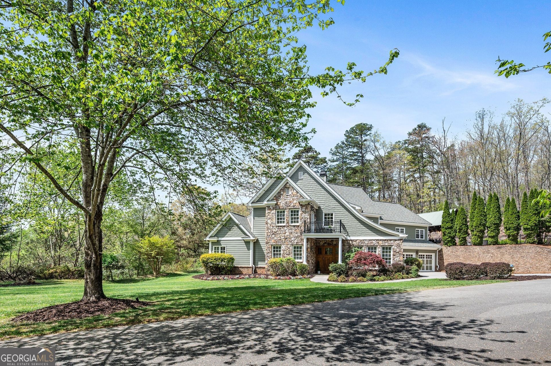 Perched atop the scenic rise of Red Top Mountain, just 35 minutes north of Atlanta, 12 Horizon Trail presents a refined, resort-inspired retreat where mountain vistas and timeless design converge. Custom built in 2005, the residence reflects a European-inflected Craftsman sensibility, pairing artisanal detail with enduring materials. A gracious entry unfolds into beautifully proportioned interiors, where rich hardwood floors are complemented by accents of travertine tile. Designed with both elegance and ease in mind, the home features four bedrooms and three-and-a-half baths, anchored by a thoughtfully appointed main-level primary suite. The kitchen serves as the heart of the home an inviting, custom space centered around a striking brick hearth framing the gas cooktop. An adjacent breakfast area offers relaxed dining, while a separate formal dining room comfortably accommodates gatherings of twelve. Throughout, a soft, neutral palette enhances the home's light-filled ambiance. The primary suite is a private sanctuary, opening to views of the pool and terrace beyond. Its spa-like bath has been tastefully updated, accompanied by a generous walk-in closet. A luminous sunroom further elevates the main level, seamlessly blending indoor and outdoor living and offering an idyllic setting for both entertaining and everyday moments. Upstairs, three well-appointed bedrooms are joined by an additional sunroom, creating flexible living space. A separate guest suite complete with an efficiency kitchen and private access to the pool offers a sophisticated haven for visitors or extended stays. Outdoors, the property evokes the charm of a private mountain resort, reminiscent of Highlands, North Carolina. A heated pool is framed by natural stonework and accompanied by a pavilion with a masonry fireplace an ideal backdrop for year-round enjoyment. The grounds are equally enchanting, with mature landscaping and wild blueberry and blackberry bushes adding a touch of natural beauty. Set on a level cul-de-sac lot, the home also features a three-car garage and the enduring appeal of a truly custom-built residence an exceptional offering that balances luxury, comfort, and timeless design.