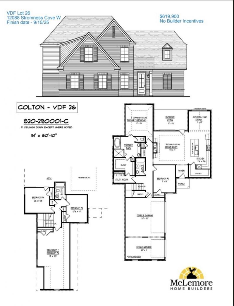 $10,000 BUILDER BONUS! Don't miss your chance to own a beautiful home in The Village at Donelson Farms! This exclusive community features just 29 lots in a quiet neighborhood with a walking trail, pond and common areas. The Colton plan is an open concept plan with a spacious great room with fireplace. Stunning kitchen with stainless steel appliances, 5 burner gas cook top and double ovens. Large walk in pantry and island with apron front sink. Enjoy your morning coffee in the cathedral vaulted dining area or step outside to the covered outdoor living. Dreamy primary suite with walk in tiled shower, deep soaking tub and double vanity. Large laundry room adjacent to primary closet to make laundry time a breeze. Two bedrooms down and 2 bedrooms/5th bedroom or recreation room up. Three car garage and no neighbors behind you. Call to schedule your private tour today!