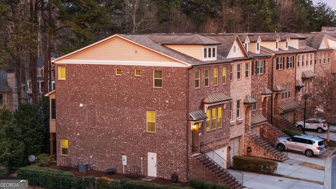 Welcome to your amazing new End-Unit townhome with the largest floor plan in the community in the highly desired 321 Vaughan community. This Downtown Alpharetta location is zoned for Top-Rated Alpharetta Elementary, Hopewell Middle and Cambridge High School! This spacious 4-bedroom, 3.5-bath end unit townhome is over 2,640 square feet and offers an exceptional open layout with 10' ceilings on the main level, 9' ceilings on the other levels, 3 entertainment areas, a coffered ceiling in the Great Room, upgraded crown molding, new designer lighting, and hardwood floors throughout the entire home, including all bedrooms. The elegant main level features a bright front sitting room, a dining area with a stylish Butler's pantry with glass-front cabinetry. The gourmet kitchen is complete with 42 white cabinetry, large entertaining island, upgraded granite countertops, subway tile backsplash, KitchenAid Stainless Steel appliances, gas cooktop, vent hood to the exterior and walk-in pantry. Enjoy a cozy keeping room with a stone gas fireplace, plus a screened-in porch overlooking peaceful, private views, your perfect morning coffee spot or reading nook. A tucked-away half bath offers a new vanity, mirror, and lighting. Upstairs, three generous bedrooms all boast hardwood floors. The convenient laundry room sits just outside the luxurious owner's suite on the top floor. The owner's suite features a tray ceiling and a fully updated spa-style bath with new mirrors, granite countertops, a walk-in shower, and a soaking tub. Secondary bedrooms enjoy privacy and share a well-appointed full bath. The ground level offers incredible flexibility, ideal for a home office with additional living space plus a guest bedroom with multiple windows. The ground floor is complete with a full bathroom, walk-in shower, mudroom area, and oversized storage closet. The extra-long driveway easily fits 4 cars adding another benefit to the property. The perfect home for entertaining inside and out, there are over 20 speaker pre-wires if music is what you enjoy. This townhome lives like a single family home with all of the amazing windows on 3- sides, privacy on the side and rear, plus the long driveway. Here you will enjoy no maintenance of the exterior of your new home or the yard. The Downtown Alpharetta area is the hub of local culture and activity that delivers the luxury of the modern South where you can shop, eat, watch a movie, enjoy a festival or hear a concert. This upscale destination brings together Southern charm with everything you have been looking for! Located nearby Ameris Bank Amphitheatre, this unique setting for music lovers is 45 acres and seats 12,000 people between the under roof and open lawn seating. Less than 1 mile from Downtown Alpharetta and near the Alpha Loop, Avalon, and endless dining, shopping, and entertainment you will love the convenient location and lifestyle with low maintenance. With over 250 shops and 200 restaurants within a 5-mile radius, there are always things to do in Alpharetta! Experience the exceptional lifestyle you will enjoy at 126 Brindle Lane today!