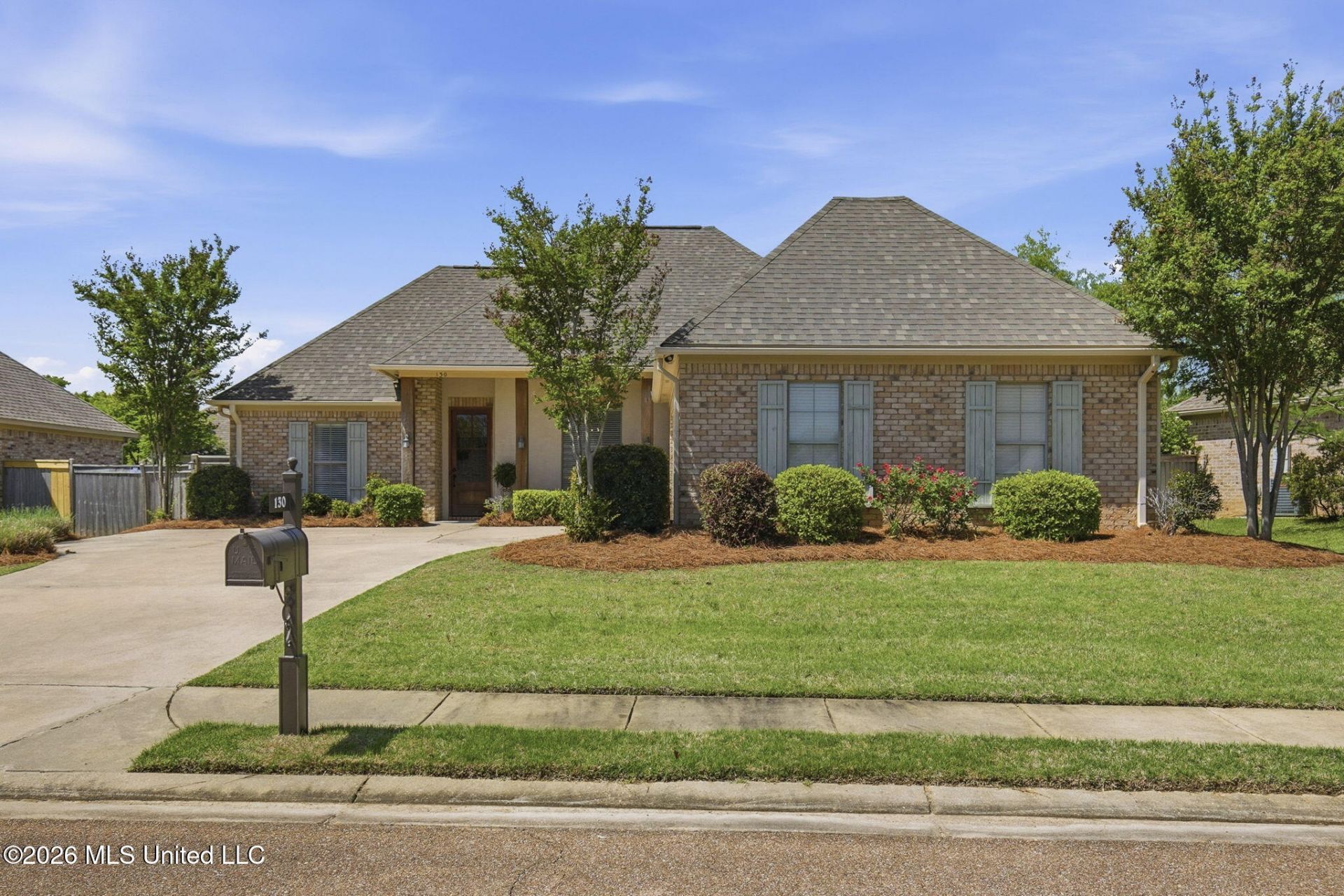 **OPEN HOUSE SUNDAY 4/12 FROM 2-4PM. This home is eligible for a 0% down, USDA loan, if buyer qualifies.** This charming, 3-bedroom, 2-bath home in Stillhouse Creek has so much to offer in its 1704 square feet. A few of the upscale highlights include a foyer entry and archways bathed in beautiful exposed brick, gorgeous heart pine flooring throughout the living, dining, AND the primary suite, brand new carpet in both guest bedrooms, and updated, modern rustic light fixtures.This home features a split plan. Both guest bedrooms were just refreshed with brand new carpet and fresh paint. You'll see very pretty, neutral paint colors in most of the home, and a moody and tranquil teal in the primary suite. The kitchen is spacious with high ceilings, an abundant amount of custom cabinetry (including a walk-up pantry), and endless counter space. It features granite countertops, stainless appliances, and a large island with counter seating for four. There's also room to add a small bistro table, however there is a separate formal dining room that is open to the living area. The living area is a nice size with lots of natural light and features a cozy gas fireplace. Behind the painting, a TV mount is already installed that is adjustable, so you can position your TV exactly how you like it.The laundry room has lots of storage, a counter space for folding, and a hanging bar. The exterior of the home is very welcoming with front and back patios featuring high beadboard ceilings, wood beam posts, and stone pavers. The extended back patio is partially covered, features roll-down sun shades, and overlooks a large, fully fenced backyard. The 2-car garage features a nice storage room and there are gutters around the entire home. HVAC is 2 YEARS OLD; Roof is 6 years old. Stillhouse Creek is a friendly, Madison community featuring sidewalks, a playground, and extensive walking trails. You are 5 mins from I-55 and close to everything that is happening in the Gluckstadt/North Madison area.