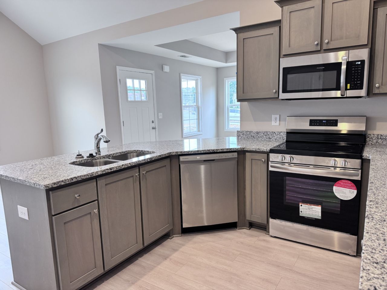 Lot 25 - Hoover Floor Plan - GREAT Starter home! Seller will pay $5,000 in closing cost, any lender you choose. All one level, 3 beds, 2 baths, concrete drive, granite counters in kitchen. Includes stainless stove, dishwasher & microwave. Granite Counters in Bathrooms. Concrete patio in rear. Concrete drive. Laminate in great room & Kitchen, carpet in all other rooms. Ceramic tile in baths. Interior photos shown are of previous built home. Cabinets installed. Flooring has been ordered. Home will be complete 4/30/2026. Room measurements taken from prints. Refrigerator is not included. No neighbors to the left of the home; open space.