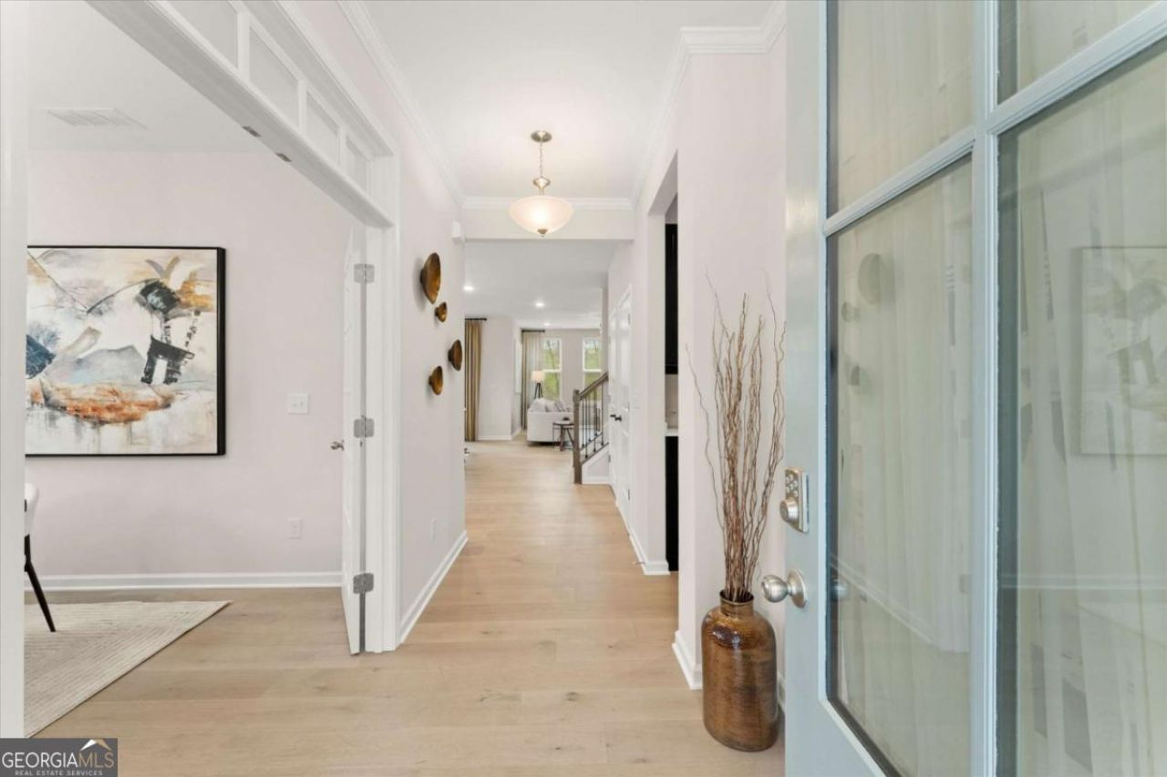 Imagine unwinding each evening as the sun sets over the water or sipping your morning coffee on the back deck by peaceful waterfront views. This stunning Craftsman-style home offers the perfect blend of serenity and sophistication. From the moment you step onto the charming front porch, you will feel right at home. Inside, a welcoming formal dining room sets the tone, leading seamlessly into the beautiful gourmet kitchen featuring quartz countertops, stainless steel appliances and an oversized island - ideal for gathering with family and friend. The main level primary suite is a true retreat, showcasing breathtaking lake views, a spa inspired bath and a spacious custom walk-in closet. Upstairs you'll find a versatile loft, dedicated office space, three generously sized bedrooms and two full baths. The full unfinished basement provides endless opportunities. Thoughtful upgrades totaling over $70K - including hardwood floors throughout, epoxy garage flooring, plantation shutters and enhanced landscaping - adding both style and value to this exceptional home. Ideally located just minutes from the Tellus Museum, Downtown Cartersville, The Golf Club of Cartersville, Terminus Wake Park, Piedmont Medical Center, Aubrey Village - a coming soon 2,300 mixed use development and the future Hyundai facility, this home combines convenience with the beauty of lakeside living. With charming community amenities and scenic surroundings, this is more than a home - it's a lifestyle. Don't miss your opportunity to own a rare piece of lakefront paradise.