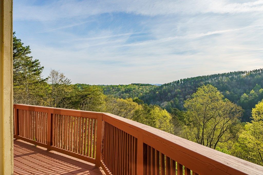 Rare opportunity to own a truly unique mountain retreat featuring year-round, 180 degree panoramic long-range mountain vista views from a private 5-acre estate. This well-maintained Chalet-style 3BD/3BA home (furniture included) is set in a nature haven and offers exceptional privacy and versatility, with strong short-term rental appeal and ability to subdivide land. Inside, the home showcases the stunning views with floor-to-ceiling windows offering you the experience of forest bathing, without leaving your couch, warm tongue-and-groove ceilings, hardwood floors, and thoughtfully selected clean, eco-conscious materials used throughout both the home and property. A distinctive floor plan places each bedroom suite in its own wing, minimizing sound transfer and creating a true sense of privacy for owners and guests alike. The master bedroom suite serves as a blissful escape, featuring a spa-inspired bathroom designed for relaxation. It boasts a marble double vanity and deep jacuzzi tub?perfect for soaking after a day of adventuring. For nature buffs a 320sq ft basement storage for fishing equipment, kayaks, and all your gear. It also functions as a storm shelter. Outdoors, mature evergreens provide privacy, the well-established organic micro-farm is ready for planting. A beautifully designed stone overlook captures sweeping long-range views and is outfitted with an outdoor furniture setup including a couch, lounge chairs, and a firepit, creating the perfect setting for entertaining or unwinding. Experience the magic of the mountains after dark, where lightning bugs dance across the valley and expansive skies invite unforgettable stargazing. Located within a gated 5,500-acre mountain community, residents enjoy an unmatched amenity package including two pools, tennis courts, pickleball, basketball, walking trails, a recreation center, gym, playground, paved roads, stocked lake, trout stream with beach access, and a rentable Trout Lodge.