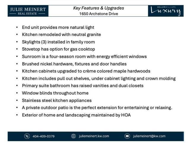 This condo located at 1650 Archstone Drive, Cumming, GA 30041 is currently listed for sale with an asking price of $585,000. This property was built in 2016 and has 3 bedrooms and 2 full and 1 partial baths with 3137 sq. ft. Archstone Drive is located in the Orchards of Stoney Point subdivision within the Shiloh Point - Denmark school district. Search Orchards Of Stoney Point real estate on www.www.nataliebrown.crye-leike.com today.