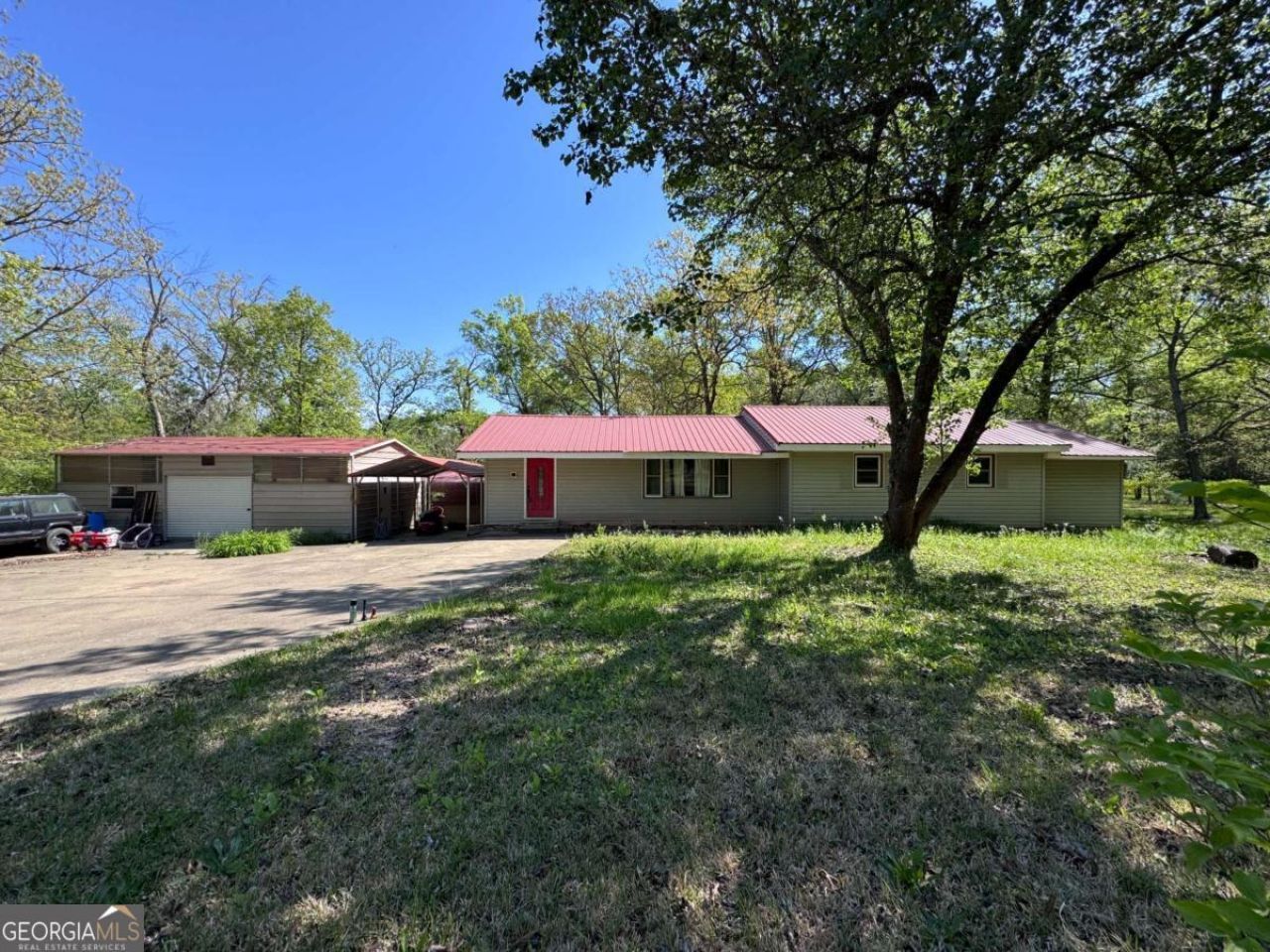Opportunity meets potential on over 2 private acres! Tucked away on a low-traffic/ dead-end street with only six homes, this property offers the kind of privacy that's increasingly hard to find. Calling all investors, this home is perfectly suited for a fix-and-flip or long-term rental. Features include a carport plus a detached metal-sided workshop with a roll-up bay door, perfect for an at-home mechanic or hobbyist. Inside, you'll find an eat-in kitchen, spacious closets uncommon for homes of this era, and ample storage throughout. The layout also offers room to expand behind the primary bedroom, providing additional value-add potential. A durable metal roof is already in place, and hardwood floors are present in part of the home. With acreage, privacy, and solid bones, this is a rare opportunity. Home is sold as-is and any contents will not be removed.