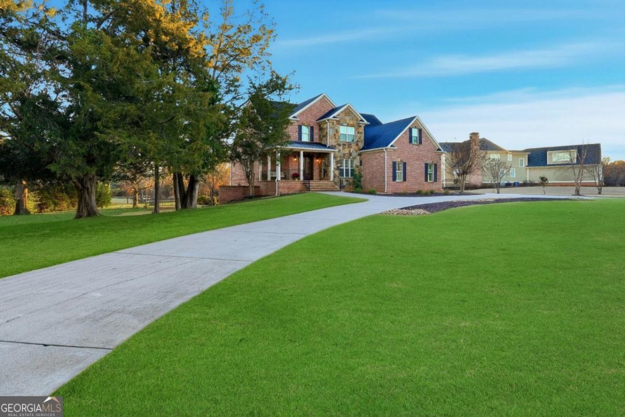 Featured on The American Dream TV * Luxury Estate * Multi-Generational Living * Private Pool Retreat Near Lake Allatoona. Experience a home where luxury, lifestyle, and craftsmanship converge-recently featured on The American Dream TV. Perfectly positioned on a 1.45-acre manicured estate lot with a tranquil, stocked pond, this remarkable four-sided brick and stone residence offers an elevated standard of living in one of Cartersville's most sought-after communities. A circular drive and impressive four-car garage, complemented by a detached carriage house with a finished office above, create a grand arrival and provide exceptional flexibility for work, guests, or creative space. Inside, a dramatic two-story foyer sets the tone for refined interiors, opening to elegant formal spaces and a seamless open-concept design ideal for both everyday living and sophisticated entertaining. The designer chef's kitchen is a true showpiece-featuring an oversized quartz island, ceiling-height custom cabinetry with glass accents, pot filler, built-in refrigerator, coffee bar, and professional-grade stainless steel appliances. The space flows effortlessly into a stunning fireside family room with coffered ceilings and a wall of windows, filling the home with natural light and picturesque views. The main-level owner's retreat offers a private sanctuary, complete with its own fireplace, elegant tray ceiling, and a spa-inspired bath showcasing a freestanding soaking tub, frameless dual-head shower, and dual vanities designed for ultimate relaxation. Upstairs, spacious secondary bedrooms with private or shared ensuite baths provide comfort and privacy for family and guests alike. The fully finished terrace level offers incredible versatility with a complete second kitchen, expansive living area, fireside bedroom, full bath, gym or flex garage space, and covered patio with private entry-making it ideal for in-law, teen, or multi-generational living. Step outside and discover your own private resort-style retreat. A covered porch and grilling deck overlook the heated saltwater pool, flagstone patio, elegant wrought-iron fencing, and a poolside fireplace lounge designed for year-round entertaining. The level backyard and serene pond setting create a rare sense of privacy and peaceful outdoor living. Throughout the home, plantation shutters, rich hardwood flooring, custom millwork, and smart home technology elevate the experience with timeless design and modern convenience. Located just minutes from Lake Allatoona and Red Top Mountain State Park, this exceptional property offers easy access to boating, hiking, and outdoor adventure, while remaining close to Cartersville's charming downtown, renowned museums, dining, and shopping. A rare offering where elegance, privacy, and lifestyle come together-this is luxury living at its finest!