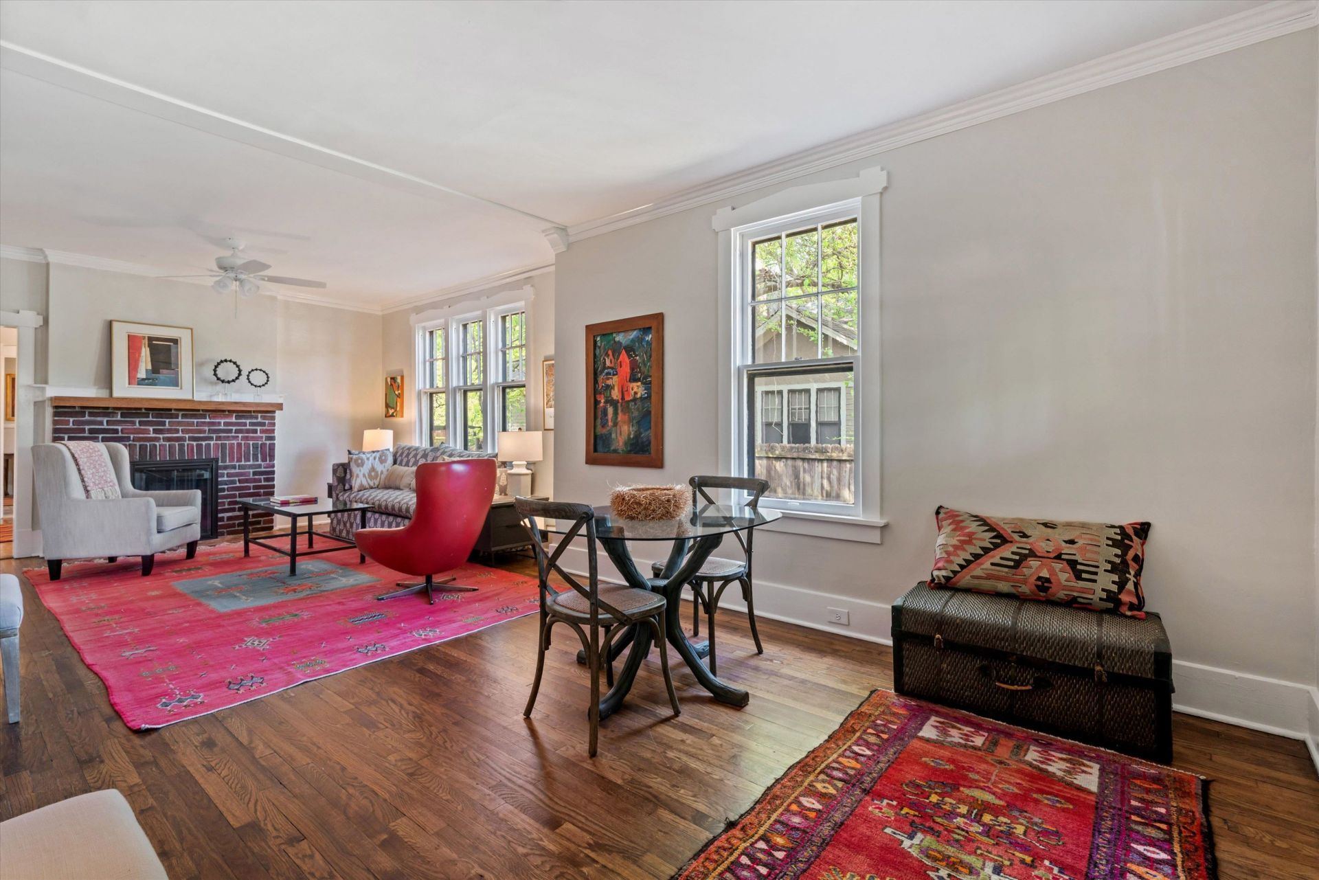 Central Gardens bungalow loaded with Midtown charm and modern updates. This 2 bedroom, 2 bath home offers an upstairs bonus room with desk and built-ins, ideal as a third bedroom, office or playroom. Inviting front porch with porch swing sets the tone. In the fully fenced backyard, a large screened-in porch, deck, and fire pit create unmatched outdoor living in a tranquil setting. Real hardwood floors, transom windows throughout, and beautiful natural light. Large closets including cedar closets plus a walk-in floored attic for additional storage. Claw foot tub in second bath and jetted tub in primary bath. Fresh paint inside and out and new lighting. Newer roof and newer AC unit. Oversized detached workshop with newly built additional storage designed to house outdoor chairs and garden equipment. Enjoy a Midtown lifestyle with nearby dining, shopping, and entertainment just minutes away.