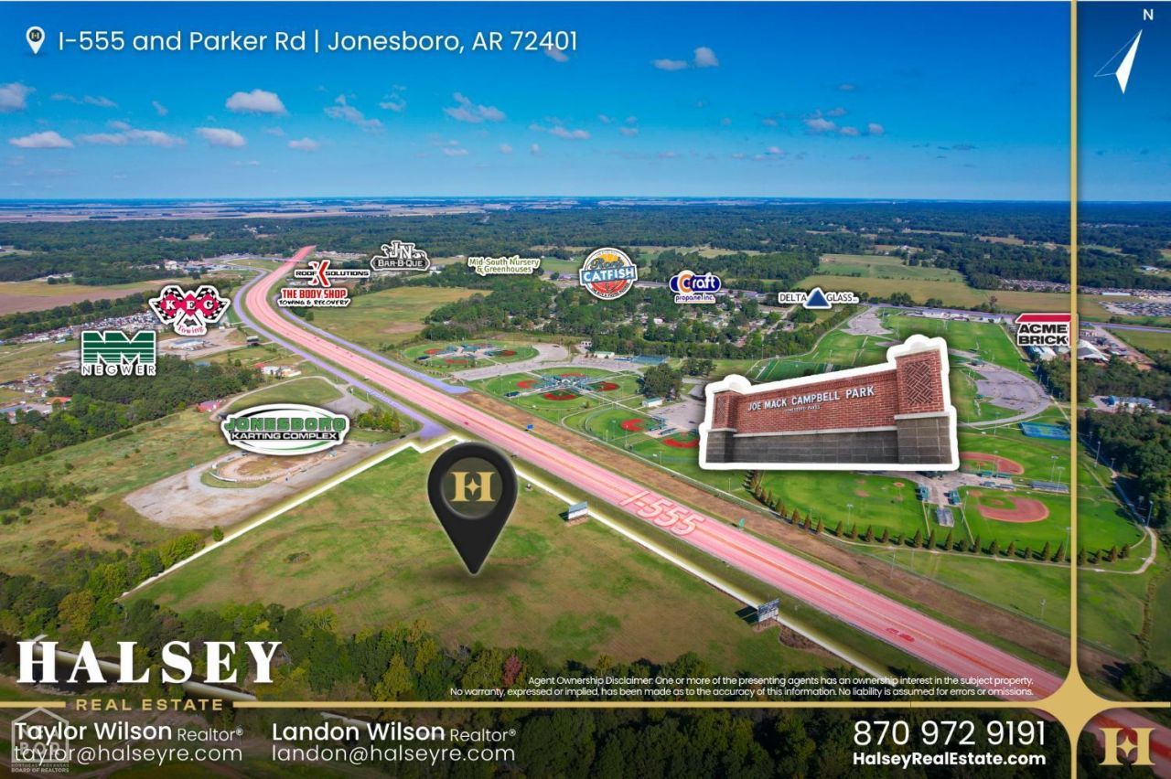 Prime development opportunity along Joe N. Martin Expressway (US-63/AR-18) in Jonesboro, AR. This 19.74-acre site is zoned C-3, making it ideal for a wide range of commercial and retail uses. Located adjacent to Joe Mack Campbell Park, the Jonesboro Karting Complex, and just minutes from major employers and residential neighborhoods, the property offers excellent visibility with an average daily traffic count of 22,000 vehicles. The site has convenient access via W. Parker Road, as well as proximity to Big Creek, providing natural drainage. Utilities, including electric & water are available nearby. With strong visibility, established zoning, and growing commercial activity in the area, this tract is well-positioned for retail, service, or mixed-use development.