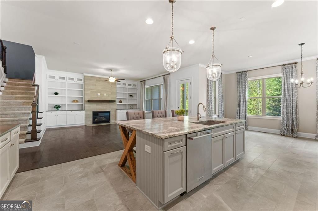 Experience a rare blend of sophistication, space, and effortless living in this exceptional luxury townhome, ideally situated within the highly coveted Harlow community. Designed for those seeking to simplify without compromise, this residence offers the ease of low-maintenance living paired with the scale and presence of a single-family home-highlighted by its remarkable 40-foot width and thoughtfully curated interiors. From the moment you arrive, the welcoming front porch sets a tone of relaxed elegance. Inside, the main level unfolds into a sunlit, open-concept living space designed for both everyday comfort and elevated entertaining. A flexible office or guest suite with a full bath offers versatility, while the expansive great room, anchored by a custom fireplace with built-in bookcases and cabinetry, creates a warm and inviting gathering space. The dining area-graciously sized to host 12 or more-flows seamlessly into a chef-inspired kitchen that is as functional as it is beautiful. Here, a striking marble and reclaimed wood-accented island, Blanco sink, and premium KitchenAid appliances-including a recently updated oven/microwave combo-are complemented by abundant light gray Peachtree cabinetry and an extraordinary walk-in fantasy pantry. Just beyond, an upgraded drop zone connects effortlessly to the garage, enhancing daily convenience. Step outside to the covered veranda, where indoor and outdoor living blend seamlessly-perfect for morning coffee, evening wine, or hosting friends in a private, serene setting. Upstairs, a collection of generously sized bedrooms provides comfort and flexibility, including a luxurious primary suite designed as a true retreat. The spa-inspired bath showcases quartz finishes, elegant tilework, and a seamless glass shower, while the custom-designed closet delivers both beauty and exceptional organization. Plush new carpeting throughout the upper level and stairways adds a fresh, refined feel, and the well-appointed laundry room-with custom cabinetry, sink, and quartz counters-elevates everyday living. The terrace level transforms the home into an entertainer's dream, featuring a spacious media and lounge area with custom ash-gray cabinetry, quartz countertops, beverage refrigeration, a sink, and designer lighting. A thoughtfully completed lower-level expansion adds a private bedroom, closet, and upgraded full bath-ideal for guests or multigenerational living. Set on a premium lot, the home offers an oversized fenced yard with tranquil wooded views-an uncommon and highly desirable feature that enhances both privacy and livability. Beyond its beauty, this residence has been meticulously maintained and extensively improved, offering true peace of mind. Significant investments include a full HVAC system replacement across all levels, updated kitchen and dining flooring, new upper-level carpeting, enhanced garage storage, and key infrastructure upgrades such as sewer line and water heater expansion tank replacements-ensuring both comfort and long-term reliability. Harlow delivers a lifestyle that is simply unmatched, with resort-style amenities including a concierge and social director, two pools, a stunning clubhouse, tennis courts, walking trails, gathering spaces, and two dog parks-with gated entry coming soon. All of this, paired with exterior maintenance, allows you to focus on enjoying life rather than managing it. Ideally located just minutes from downtown Roswell, downtown Alphare
