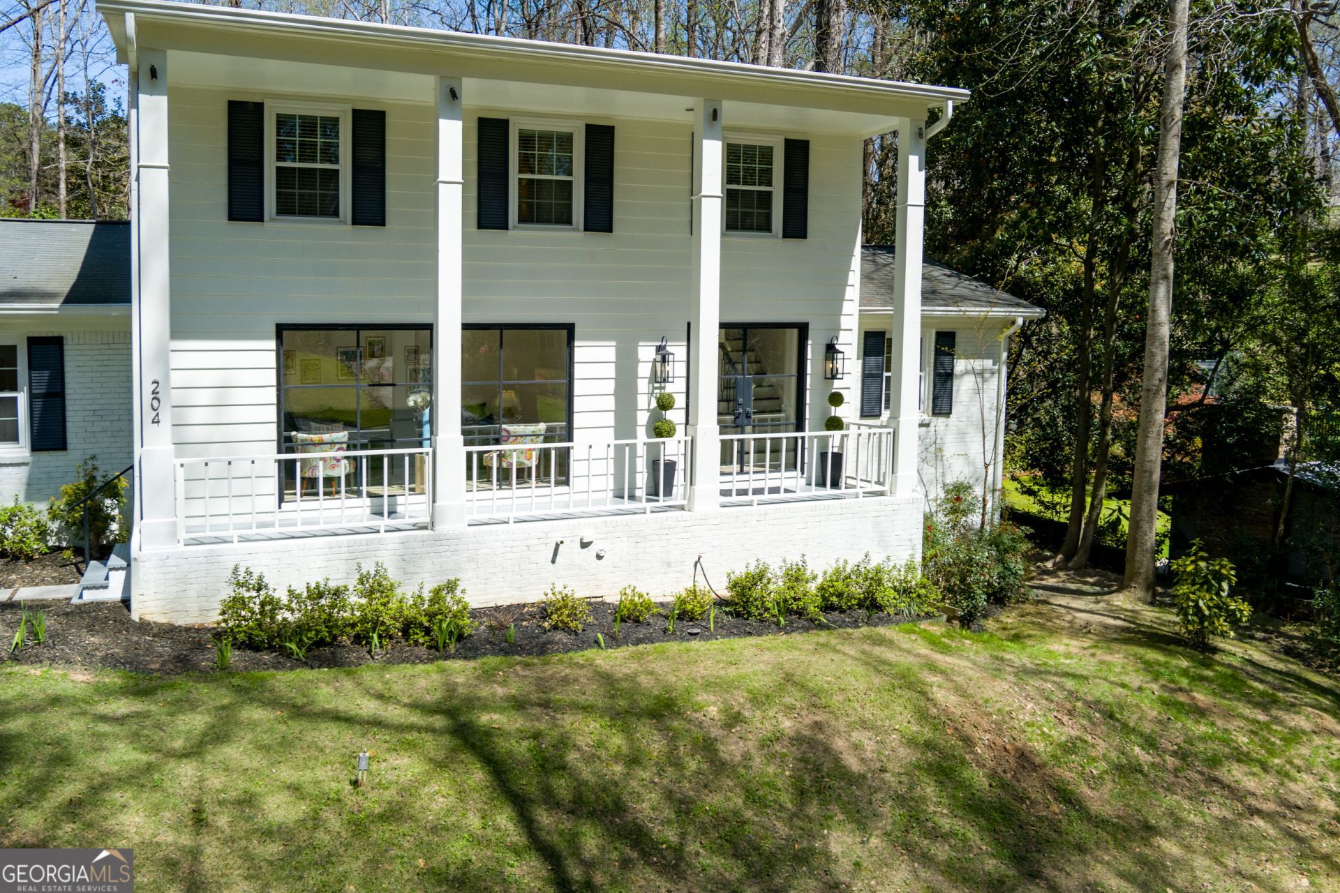 At 204 Devonwood Drive, first impressions are not just memorable-they're layered. It's hard to say what captures your attention first: the handcrafted mailbox by a local artisan, the lush, storybook front yard, or the striking iron door and window that beautifully blur the boundary between indoors and out. Perhaps it's the warm glow of the lanterns and sculpted topiaries that quietly signal that you're somewhere special. This beloved neighborhood home, featuring master on main and additional master suite upstairs, is a timeless two-story white wood and brick home, thoughtfully reimagined for a refined, modern lifestyle. Inside, every surface has been intentionally curated to create a light-filled sanctuary that feels both elevated and deeply inviting. Just off the entry, the front Zen Den offers a rare and magical retreat-perfect for quiet mornings, meaningful conversations, or simply enjoying the peaceful presence of nature, where birds, deer, and hawks become part of your daily backdrop. The family room glows with natural light by day and transforms into a cozy haven by night, centered around a real wood-burning fireplace-ideal for relaxed evenings and movie nights. Nearby, the sunroom is a standout favorite (althought not included in the square footage), offering serene, panoramic views that bring the outdoors in and create a sense of calm year-round. At the heart of the home, the newly designed kitchen is both stunning and functional, featuring an 8-burner professional range, custom vent hood, abundant storage with oversized drawers, and a dramatic 11.5-foot waterfall island that naturally becomes the gathering place for everyday living and entertaining. Wide-plank white oak luxury vinyl floors run throughout, complemented by modern baseboards and trim that add a clean, architectural finish. The main-level owner's suite is a true retreat-beautifully appointed and highly functional, with a spa-like walk-in shower, custom closet, and the convenience of a dedicated laundry area. Upstairs, a second primary suite offers exceptional flexibility, ideal for multi-generational living, guests, or those seeking additional privacy, complete with its own spacious ensuite bath and walk-in closet. Outdoors offers multiple spaces for al fresco dining, roasting marshmallows at the fire pit, or play. Beyond the home, the North Springs community is known for its warmth and connection-where neighbors greet each other by name, conversations happen organically, and a genuine sense of community thrives. With its rolling hills and quiet streets, the setting feels like a peaceful mountain escape-yet you're just minutes from Sandy Springs, downtown Roswell, Dunwoody, and Buckhead. This is more than a home-it's a feeling, a lifestyle, and an opportunity to live beautifully, both inside and out.