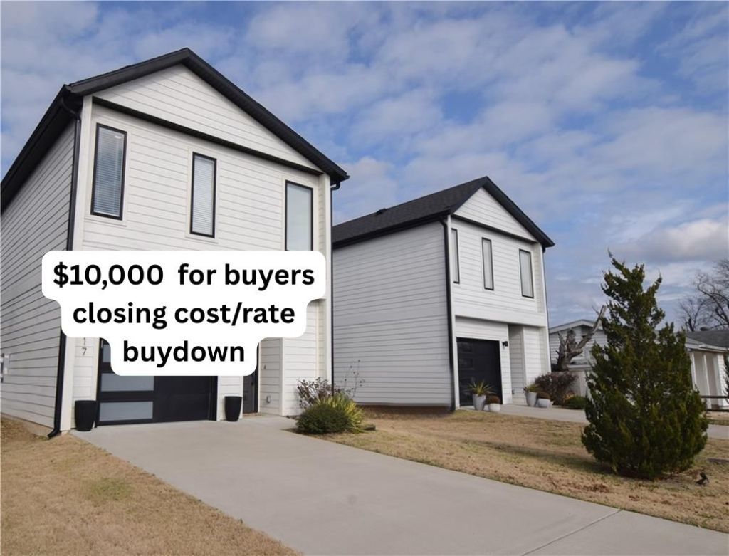 Seller to pay up to $10,000 of buyer's closing cost to be used for closing cost, pre-paid, or rate buy down. Seller preferred lender credit up to $3,500 as well. Total closing cost up to $13,500 total. Contemporary living just under 1 mile from Downtown Rogers and only 7-minute walk to local shops and restaurants. This immaculate 3-bedroom, 2.5 bath home features numerous upgrades throughout and is filled with natural light, high ceilings and sleek black-and-white finishes. The Kitchen boasts granite countertops, ample storage, under-cabinet lighting and Energy Star appliances, including an electric range with air-fry option. The open layout makes everyday living and entertaining effortless while the covered patio overlooks a spacious fully fenced backyard. Additional highlights include abundant storage and a 240V EV charger in the garage. Move-in ready and exceptionally maintained, this home is a must-see.