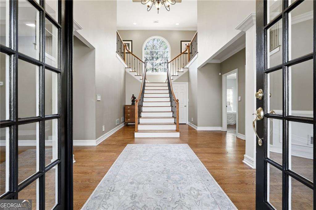 Welcome to timeless elegance in the heart of Alpharetta. Nestled on a quiet cul-de-sac in the highly desirable Park Forest community, this exceptional three-sided brick residence offers the perfect balance of classic charm, thoughtful updates, and expansive living spaces designed for today's lifestyle. A grand two-story foyer sets a striking first impression, showcasing a sweeping staircase and rich hardwood floors that flow seamlessly throughout the main level. Designed for both everyday living and effortless entertaining, the open-concept kitchen is beautifully appointed with granite countertops, stainless steel appliances, a new dishwasher, and a timeless white subway tile backsplash. The kitchen opens to a dramatic vaulted family room anchored by a fireplace and custom built-ins, all framed by serene views of lush greenery. Upstairs, the spacious primary suite serves as a true retreat, complete with a private sitting area, an oversized spa-inspired bath with dual vanities, and a generous walk-in closet. Two additional bedrooms with custom design details share a well-appointed secondary bath. The professionally finished terrace level expands the home's versatility, offering a fully equipped two-bedroom in-law suite with its own kitchen-ideal for multigenerational living, guest accommodations, or an elevated entertainment space. Set within the sought-after Park Forest swim/tennis community, residents enjoy access to a clubhouse, scenic walking trails, playgrounds, and sports courts. Perfectly positioned just minutes from Avalon, downtown Alpharetta, and GA-400, this home also benefits from proximity to top-rated schools, including Alpharetta High School. A rare opportunity to own a beautifully maintained, spacious home in one of Alpharetta's most convenient and vibrant locations.