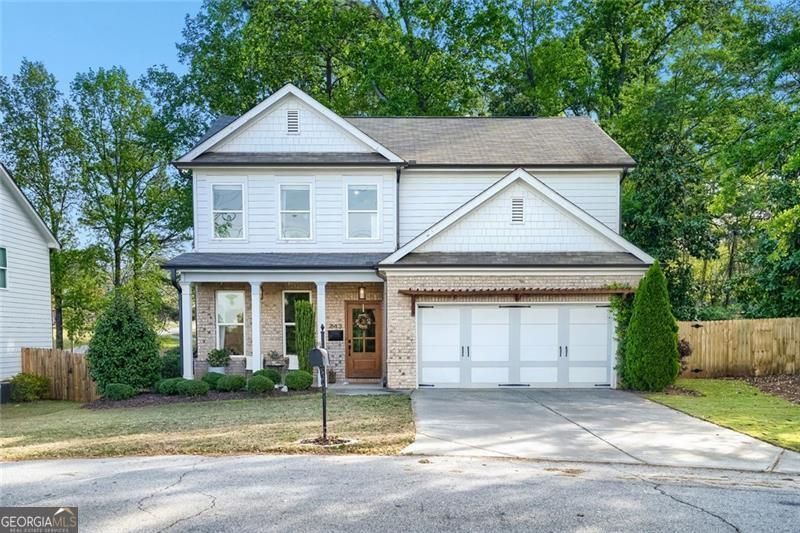 Nearly new and beautifully styled, this 4-bedroom, 2.5-bath craftsman home is located in the sought-after Buford City Schools district. From the moment you step inside, you're greeted by abundant natural light, elevated finishes, and a warm, inviting feel throughout. The open-concept floor plan is ideal for both everyday living and entertaining, seamlessly connecting the kitchen, dining area, and living room. The kitchen features crisp white cabinetry, stainless steel appliances, and a convenient breakfast bar for casual meals. The living room is anchored by a stunning brick fireplace and a wall of windows that overlook the backyard, creating a bright and airy space to gather. A true highlight of the home is the covered back porch with its own fireplace, perfect for year-round enjoyment, whether hosting guests or unwinding at the end of the day. An additional flex space on the main level offers versatility for a formal dining room, office, or playroom. Upstairs, the oversized primary suite serves as a private escape, featuring a well-appointed ensuite with a double vanity, soaking tub, and separate shower. Three additional bedrooms share a well-appointed bathroom and offer plenty of space for family or guests. Located just a short walk to Downtown Buford, this home combines modern living with unbeatable convenience in one of the area's most desirable communities.