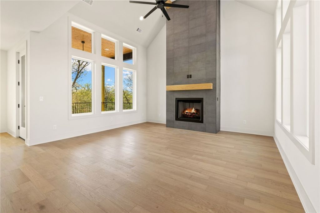 Stunning new construction near Lake Lomond in Bella Vista! This 3 bed, 2.5 bath home blends modern design with warm, natural finishes and thoughtful upgrades throughout. Hardwood floors flow seamlessly across the main and upper levels, creating a cohesive, high-end feel. The chef's kitchen is a true showstopper, featuring quartz waterfall island, custom cabinetry, designer lighting, subway tile backsplash, gas range, and abundant storage-perfect for entertaining or everyday living. The private primary suite offers a spa-like bath with dual vanities, soaking tub, tiled walk-in shower, and elegant gold fixtures. Enjoy the convenience of a laundry area in the primary closet plus a full upstairs laundry room. Upstairs you'll also find a versatile loft and dedicated office space. Relax on the covered deck overlooking serene, wooded surroundings just minutes from Lake Lomond.