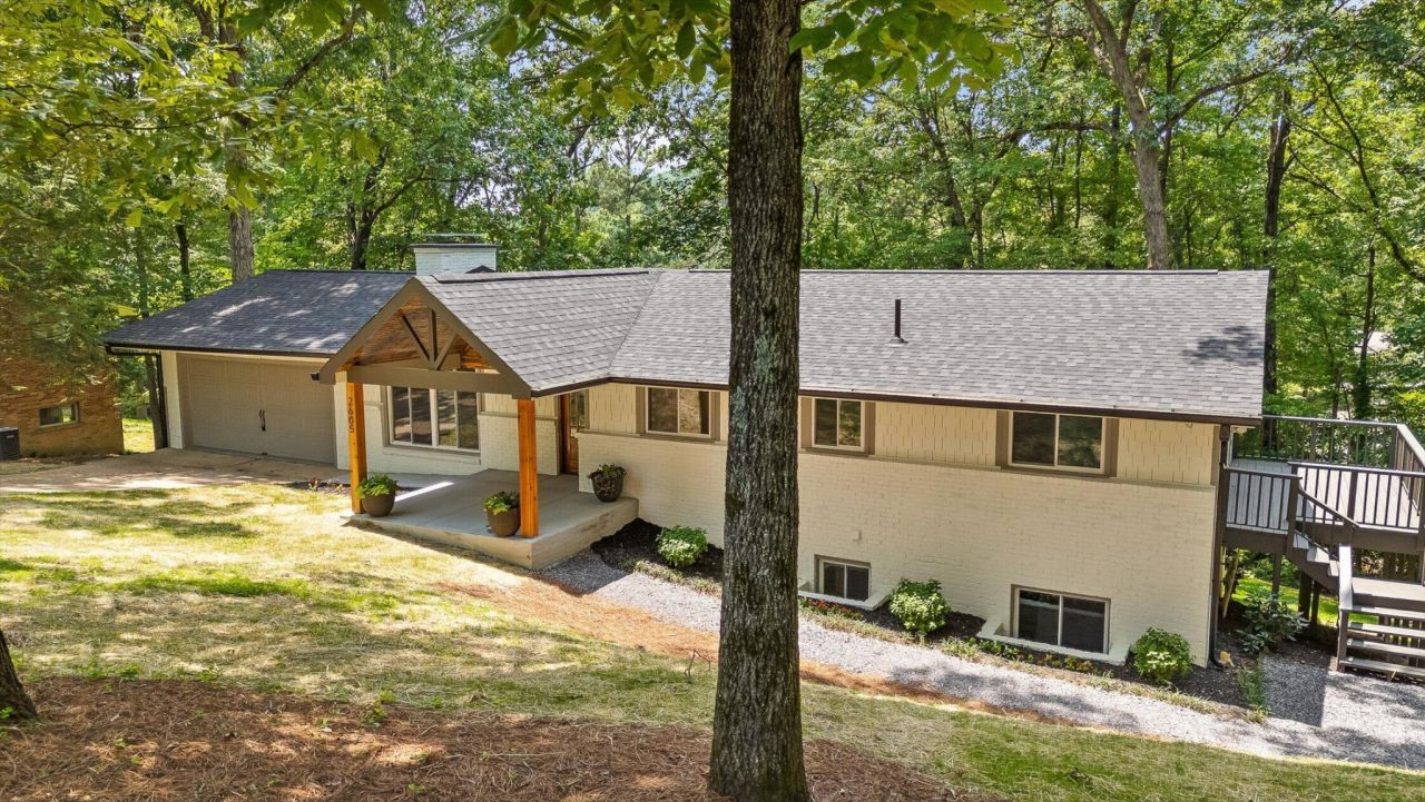 Quietly set on a wooded 0.6-acre lot in Dallas Heights, this modernized home offers privacy, style, and an exceptional location just minutes from downtown Chattanooga, the North Shore, and Red Bank. The setting feels tucked away, with mature trees and natural light throughout, while everyday conveniences remain close at hand.The interior has been thoughtfully refreshed from top to bottom, with nearly every visible surface updated. The main level includes two bedrooms, highlighted by a private primary suite that opens directly to a spacious deck surrounded by greenery. Living and entertaining spaces flow easily, anchored by a cozy fireplace and a redesigned kitchen featuring new cabinetry, quartz countertops, stainless steel appliances, and contemporary lighting.Bathrooms throughout the home have been tastefully updated with tile showers, new tubs, modern vanities, and clean, timeless finishes. Additional improvements include new sheetrock, interior and exterior paint, updated flooring, energy-efficient windows and doors, Hardie-style siding, and a new roof... creating a home that feels fresh, current, and move-in ready.The finished basement adds flexible living space with a large den, second fireplace, full bath, and private exterior entrance... ideal for guests, a home office, or additional living needs. A former carport has been converted into a true two-car garage, adding everyday convenience and storage.A tongue-and-groove open-gable front porch and fresh landscaping complete the picture, while updated lighting and an upgraded electrical panel add confidence and reliability. Stylish, private, and well-located, this Dallas Heights home delivers modern comfort just minutes from the heart of Chattanooga.