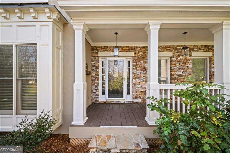 Minutes from downtown Buford and Sugar Hill, this beautifully upgraded 4-bedroom, 3-bath home offers private wooded living near Lake Lanier with a 600-sq-ft multi-level deck, sunroom with fireplace, and extensive custom upgrades throughout. Tucked into a quiet enclave of custom homes, 2608 Wendover Court combines peaceful outdoor living with convenient access to shopping, restaurants, parks, and community events. From the moment you arrive, thoughtfully designed landscaping and native mountain laurel plantings create a welcoming first impression. Inside, the home immediately stands out with warmth and craftsmanship. The living room has been transformed into a charming library with custom built-in shelving and cabinetry, creating the perfect space for reading, working, or relaxing. The completely remodeled kitchen anchors the main level with rich cherry cabinetry, granite countertops, and hardwood floors, making it both beautiful and functional for everyday living and entertaining. Trim upgrades throughout the main level include crown molding, custom paneling, and chair rail in the dining room, adding architectural character rarely found in newer homes. The primary suite offers a relaxing retreat, complete with its own fireplace. An adjacent finished room provides flexible space for a nursery, office, or sitting room, while a mudroom addition with handicap-accessible full bath adds everyday convenience. Outdoor living is exceptional. The original deck was replaced with an expansive multi-level 600-square-foot deck, ideal for entertaining or enjoying the peaceful wooded setting. Beneath the main deck, a RainAway under-deck system creates additional covered outdoor living space with wiring available for a future hot tub. The backyard has been carefully terraced with retaining walls to create flat garden areas, landscaped paths through the woods, and a charming goldfish pond. A six-zone irrigation system helps maintain the extensive landscaping across most of the property. One of the home's favorite gathering spaces is the sunroom with fireplace, originally built as a screened porch and later enclosed, connecting to the front porch to create a wrap-around feel along one side of the home. Surrounded by mature trees and thoughtful landscaping, the home feels like a private retreat while remaining just minutes from Lake Lanier recreation and the dining and shopping destinations of Buford and Sugar Hill. Major updates provide comfort and peace of mind, including: hardiplank siding; double paine windows, leaf guard gutters, insulated garage door with windows, smart homes upgrades, wired security, extended direway with boat/RB parking and full RV hookups, exterior flood lighting illuminating the entire property Homes with this level of care, upgrades, and outdoor living space rarely come available in this Lake Lanier area location.