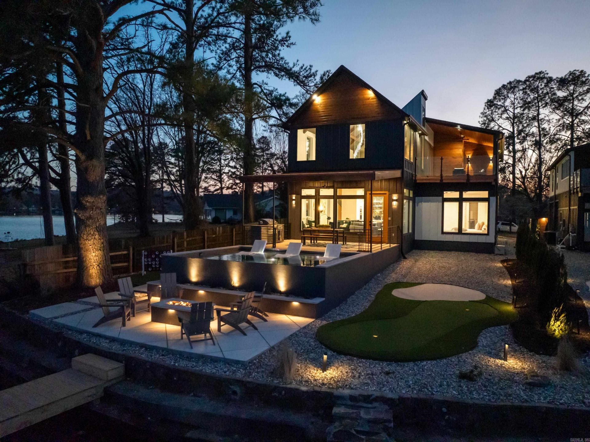 Welcome to Emerald Point, a stunning 4-bedroom, 4.5-bath lakefront home on Lake Hamilton in Hot Springs, Arkansas. Newly built and carefully designed, this home blends style, comfort, and fun for an unforgettable lake experience. This property is an active short-term rental (STR). Three bedrooms feature king-size beds for ultimate comfort, while one bedroom offers four custom queen-size bunk beds, providing flexible sleeping options. Two bathrooms are ensuite, with two additional shared baths for convenience. The two-story layout balances living and entertainment. The main-level kitchen has modern appliances for easy cooking, and upstairs, the game room includes air hockey, shuffleboard, arcade games, Pop-a-Shot, a Nintendo Switch, and a putting green with golf pong. Outdoors, enjoy corn hole, two kayaks, and two paddleboards for lakefront fun. Boat dock makes boating simple, and the balcony with a gas grill is ideal for meals with sweeping lake views. Every detail at Emerald Point is designed to combine comfort, activity, and relaxation in one exceptional home. From lively game nights to adventures on the water, this home delivers a lakefront experience that???s