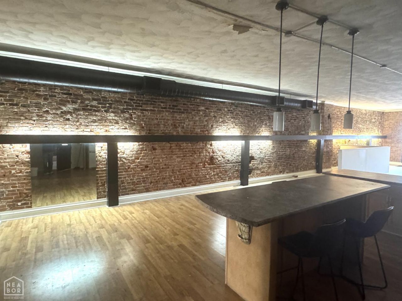 This two story building is in the heart of the downtown. Currently a real estate office on the ground floor with a two car garage. The upstairs is 4000 sq ft loft or work space