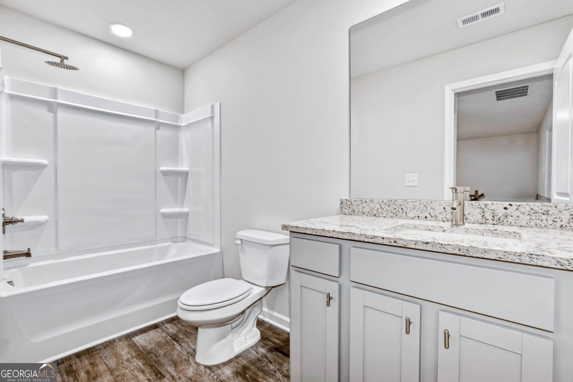 Welcome to the Norwood at Parkway James, a beautifully designed townhome ideally located in the heart of Snellville. This thoughtfully crafted residence offers a refined blend of comfort, style, and everyday functionality. The main level features an open-concept layout where the living area flows seamlessly into the kitchen, creating an inviting space for both entertaining and daily living. The kitchen is well-appointed with modern finishes and ample cabinetry, while a convenient half bath and access to a spacious patio enhance the home's overall functionality and indoor-outdoor appeal. A two-car garage provides additional convenience and storage. Upstairs, the layout is designed with both comfort and privacy in mind. A centrally located laundry room adds ease to daily routines. Two secondary bedrooms share a full bathroom, while the private owner's suite serves as a relaxing retreat, featuring a luxurious bath with a stand-alone soaking tub, LED mirrors, and a generously sized walk-in closet. Parkway James offers a low-maintenance lifestyle in a desirable location, with convenient access to shopping, dining, parks, and major commuter routes to Atlanta. This community presents an excellent opportunity to enjoy modern townhome living in Snellville.