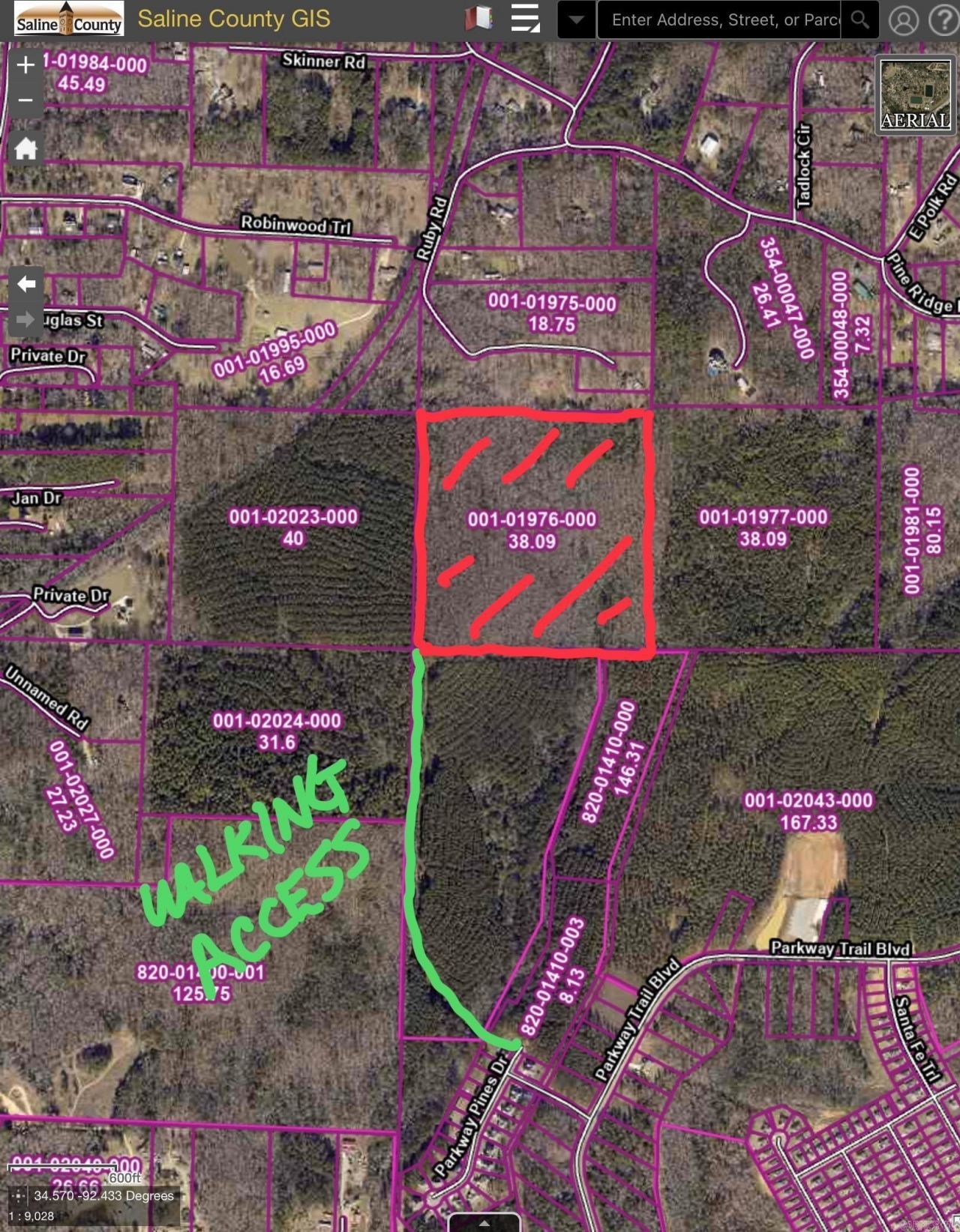 38.09 ACRES, all hardwoods! Multiple building sites on the rolling hills or a secluded home site! Outside of Bauxite City Limits and in Bryant Schools. Access for now is on a long easement... seller working on a shorter easement. Gated entrance on easement is located just before Parkway Trails Rd and the Circle K Store.