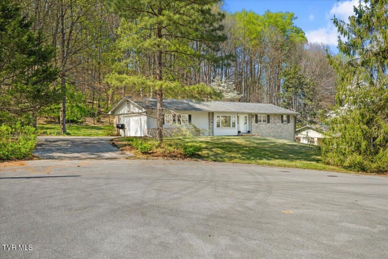 EXCEPTIONAL OPPORTUNITY - This SOLID BRICK RANCH IS SITUATED ON 1.5 ACRES within a tranquil cul-de-sac in an established neighborhood. The single-level residence offers over 1,900 finished square feet and includes three bedrooms, one and a half bathrooms, a two-car main level garage, as well as an unfinished walkout basement. The main level features a formal living room, office or study, a spacious eat-in kitchen with an island, a combined great room and dining area complete with a brick fireplace, a primary bedroom with en-suite half bath, two additional bedrooms, a hall bathroom, and a generous laundry room. The full walkout basement provides ample storage space or options for future expansion. Outdoor amenities include a covered front porch, flat backyard, mature landscaping and trees, and 1.5-acre lot offering privacy in a park-like setting. Additional highlights comprise freshly painted interiors in neutral tones, hardwood flooring, new LVT flooring in the kitchen and bathrooms, new refrigerator, dishwasher and range and all appliances--including washer and dryer--conveying with the sale. This property is ideally situated, just minutes from ETSU, VA, JC Medical Center, Quillen College, Milligan University, as well as downtown shopping and dining option.