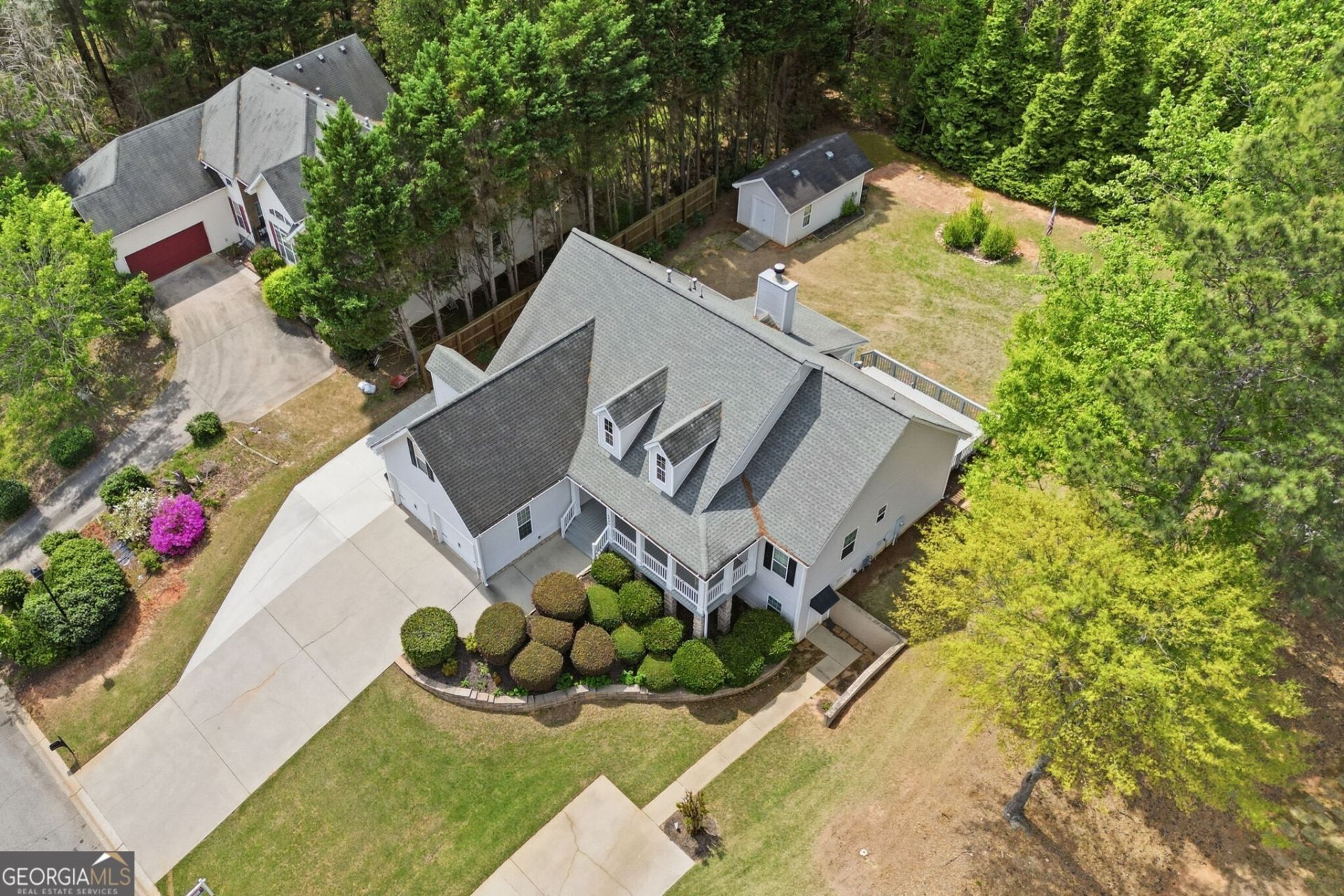 Truly 2 HOMES IN 1! This unbelievable ranch home offers an extraordinary experience as you walk in the front door. A beautiful entrance leads to a grand family room with vaulted ceilings. Spacious Formal Dining Room with boxed ceiling. Upstairs kitchen has granite countertops, breakfast island, pantry and breakfast area which leads to the screen porch and back deck. The mud room is located directly off the 2-car garage to allow for ease when entering the home. Split bedroom plan offers privacy with spacious secondary bedrooms and a full bath. The Primary Suite is large and offers a sitting area and a luxurious ensuite bathroom. Hardwood floors throughout most of the main level. The terrace level is completely finished with 2nd full kitchen, bedrooms, bathroom, family room, and laundry room. The terrace level also has a seperate drive way and entrance. Perfect for multi-generational households! Beautiful level backyard has an outbuilding for storage. You truly do not want to miss this incredible home! Minutes from The avenues as well as Marietta and Acworth!