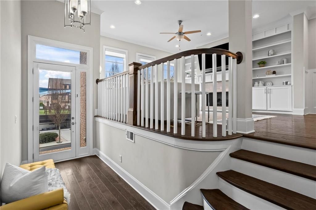 Experience the pinnacle of sophisticated living in this meticulously crafted, four-story masterpiece by renowned builder John Wieland. Nestled within the exclusive, gated enclave of Overture at Encore, this residence is a rare fusion of timeless architectural quality and cutting-edge modern luxury.THE ARRIVAL & VERSATILE TERRACE LEVELYour journey begins on the terrace level, featuring a generous two-car garage outfitted with storage and a dedicated EV charging station. Step into the foyer and be greeted by rich, hand-scraped hardwoods that lead to a versatile guest retreat. This private space, complete with a full ensuite bath, serves as a quiet sanctuary for a home office, a secluded guest suite, or fitness room. For ultimate convenience, your private elevator stands ready to whisk you through all four levels of this magnificent home.THE ENTERTAINER'S MAIN FLOOR (2ND LEVEL)The heart of the home is a breathtaking open-concept sanctuary boasting soaring 10-foot ceilings and flooded with natural light. The Chef's kitchen is a true culinary showstopper, anchored by a massive quartz island open to and equipped with a professional-grade gas cooktop, double ovens, and sleek, floor-to-ceiling shaker cabinetry. There is plenty of space for entertaining with an additional eat-in dining area.The kitchen flows effortlessly into an elegant dining area and a grand living room centered around a cozy fireplace with custom built-ins. Toward the rear, a sun-drenched keeping room offers a second intimate gathering space that opens directly to a private courtyard?an enchanting setting for tranquil morning coffee or sophisticated alfresco dining.THE SERENE PRIMARY RETREAT (3RD LEVEL)Escape to the third level, dedicated to rest and rejuvenation. The expansive primary suite is a masterclass in luxury, featuring a spa-inspired bath with dual quartz vanities, a deep soaking tub, and an oversized shower with an integrated bench and custom tile work. The primary closet is a dream realized with custom cabinetry. This level also features a laundry suite of significant scale (complete with a utility sink) and a secondary guest bedroom with its own walk-in closet and private bath.THE SKY-LEVEL LOFT & TERRACE (4TH LEVEL)The crown jewel of the home is the top-floor loft, currently featuring custom office furniture and a secondary living area. This space transitions seamlessly onto a stunning covered rooftop terrace. Here, you can enjoy breezy evenings and panoramic views of the lush tree canopy and the resort-style community pool. An additional private bedroom and full bath on this level make it a perfect home within a home for older children or long-term guests.RESORT LIVING & UNBEATABLE LOCATIONLife at Overture feels like a permanent vacation with access to a waterfall pool, a designer clubhouse, bocce ball courts, and a communal fire pit. This bike-friendly community is perfectly positioned for the modern lifestyle?walk or ride to the Ameris Bank Amphitheatre, Top Golf, and the premier dining and boutiques of Avalon and North Point. With immediate access to GA-400, you are perfectly connected to the best of Alpharetta and beyond.