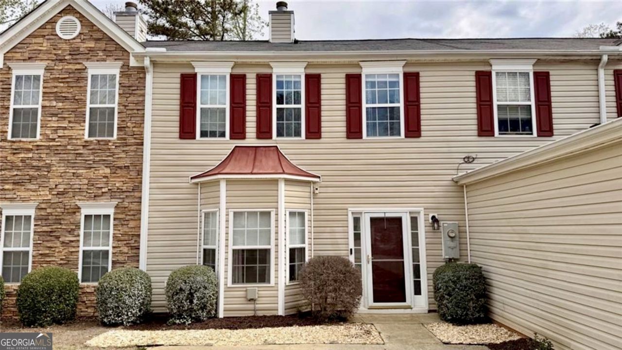 Don't miss this move-in ready townhome in the sought-after Crawford Oaks community. This well-maintained middle unit features a bright living room with a cozy wood-burning fireplace, a dramatic two-story foyer, and a functional kitchen with adjoining dining area and convenient half bath on the main level. The dining area includes a custom-built storage unit, adding both style and practical organization. Upstairs, you'll find two spacious bedrooms, each with its own private bathroom, plus a laundry area for added convenience. Enjoy your private backyard patio-perfect for relaxing or entertaining. Located in a desirable swim/tennis community with a basketball court, and HOA includes yard maintenance for true low-maintenance living.