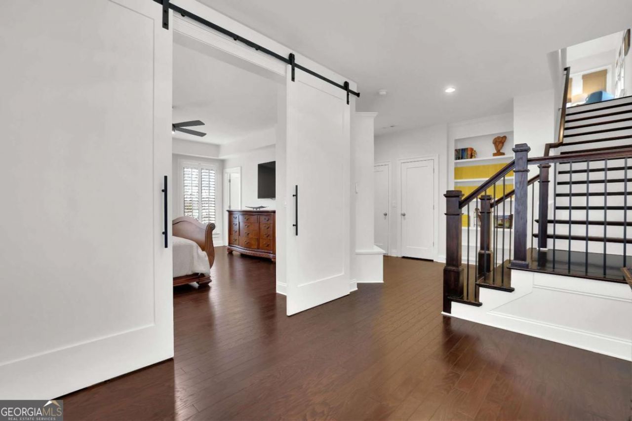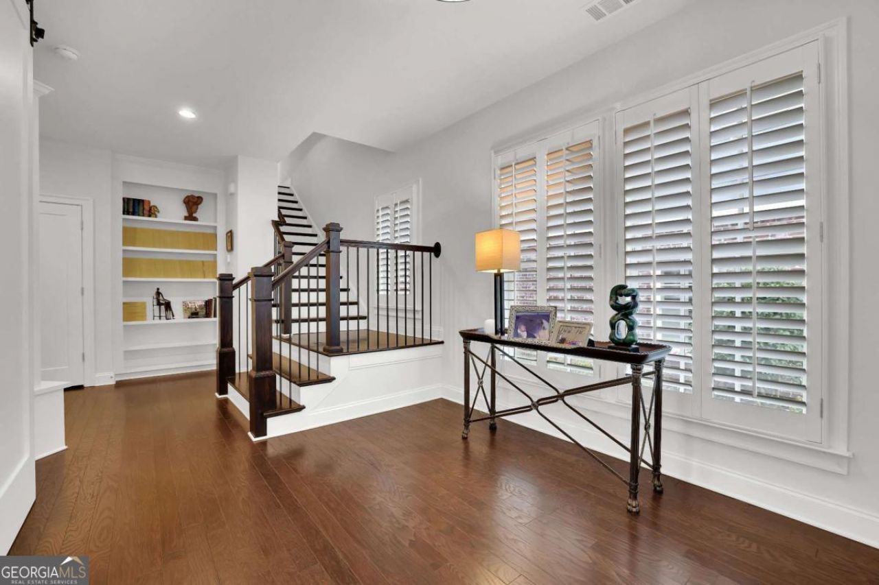 Welcome to this beautifully appointed three-story home in the highly sought-after live, work, play community of Vickery in Cumming. Built in 2017, this residence features modern finishes, updated appliances, plantation shutters, and custom blinds throughout. The open-concept kitchen is a standout, offering a large center island, painted gray cabinetry, built-in oven and microwave, and an oversized walk-in pantry, all flowing seamlessly into one of the home's two spacious living areas. A private office and two covered porches provide ideal spaces for both work and relaxation. The upper level includes three bedrooms, highlighted by a luxurious primary suite with a large tiled shower and two walk-in closets with custom shelving. The lower level offers a full bedroom and bathroom, perfect for guests or a private retreat. Enjoy a walkable lifestyle with access to Vickery's charming shops, dining, green spaces, and year-round community events, all while enjoying the comfort and style of this exceptional home.