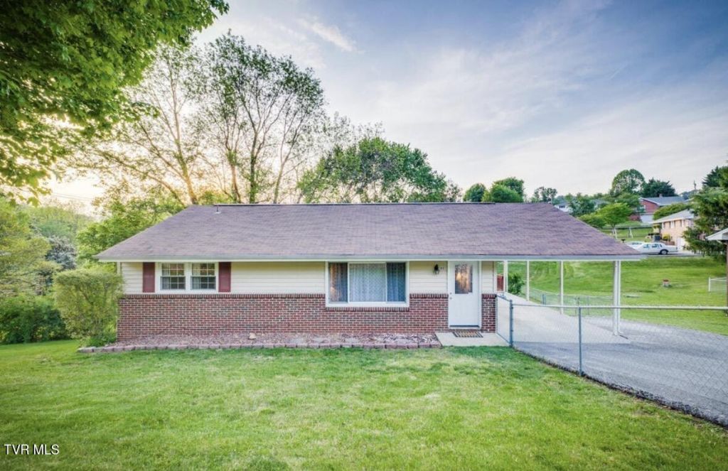 Brick and vinyl ranch in Kingsport featuring a bright, spacious living room with oversized windows and gleaming hardwood floors. The kitchen offers appliances, solid surface countertops, and washer/dryer convey. Main level includes 3 bedrooms and an updated full bath. Finished basement boasts a large den with built-ins, a 4th bedroom, and space for a future second bath. Additional highlights include a heated/cooled workshop, unfinished storage areas, outbuilding, fenced yard, garden space, deck, and large yard. Enjoy beautiful East Tennessee living with close proximity to schools, shopping, hospitals, and bike & hiking trails. Low-maintenance exterior and inviting outdoor setting complete this home. Seller offering to pay buyer closing costs with acceptable offer.