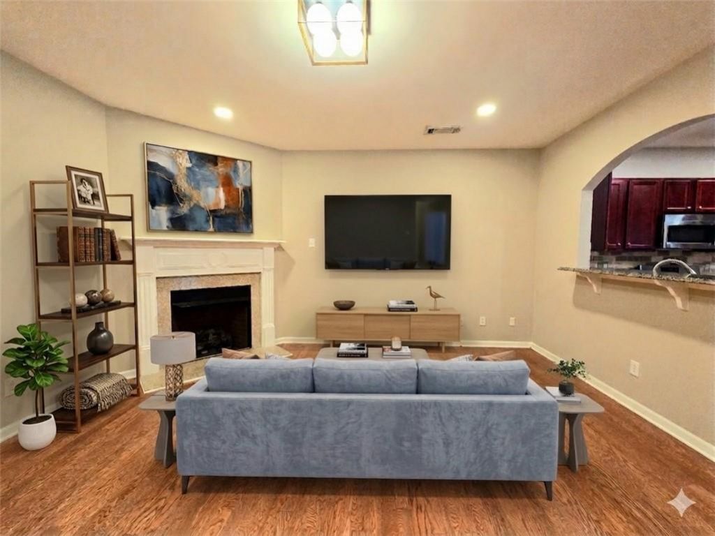 A beautiful 3 bedroom, 2.5 bath end unit townhome located at the quiet end of a cul de sac in Alpharetta. This home features a large fenced backyard, a rare find for townhome living, with one side backing to woods and additional green space nearby for added privacy and outdoor enjoyment. The bright and functional layout offers comfortable living with all bedrooms upstairs and a convenient half bath on the main level.A one car garage plus driveway parking for two additional vehicles provides plenty of space for residents and guests. The community includes a pool and a welcoming atmosphere with plenty of young children. HOA allows rentals, making this property a great option for both homeowners and investors.Conveniently located approximately 10 minutes to GA 400, Halcyon, and Big Creek Greenway, offering easy access to shopping, dining, and outdoor recreation. Furnishings shown in photos are virtually staged.
