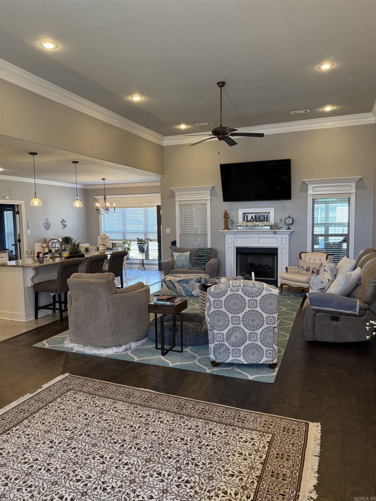 Beautiful all-brick home in sought-after Merrell Estates! This 4 bed, 2 bath home offers 2,440 sq ft with tall ceilings, crown molding, and a spacious open-concept, split floor plan. The kitchen features granite countertops throughout, white cabinetry, a large island with bar seating, pantry, and both formal dining and eat-in areas. The living room includes a gas fireplace, perfect for gathering. The primary suite offers a tile shower, soaking tub, double vanities, and a large walk-in closet. Enjoy the sunroom with mini split and a privacy-fenced backyard. New HVAC in 2025. Move-in ready and packed with upgrades!