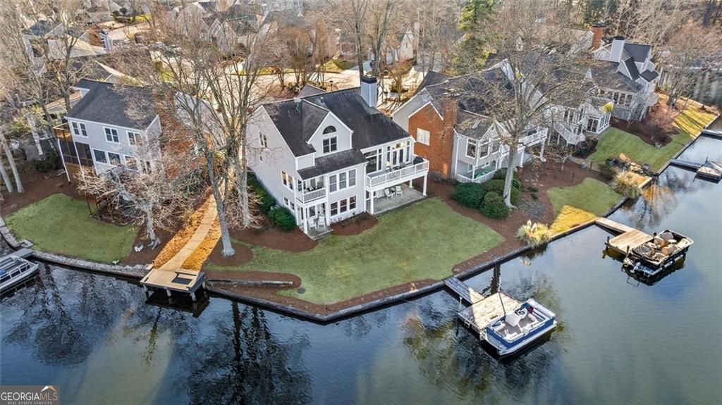 LIVE LIKE YOU ARE ON VACATION on Lake Windward with private dock in The Spinnakers of Windward * Where Herons Fish, Turtles Sun and Eagles Soar! The Views from this home will Take Your Breath Away sunrise to sunset. This Timeless Custom Remodeled home with Open-Concept Layout seamlessly connects the Dining area, a Chef's Kitchen and Living Room all centering around a stunning see-through Stacked Stone Fireplace. The Gourmet Granite Kitchen features Premium Granite Countertops*Viking 6 burner Gas Range, Stainless Steel Viking Appliances, built-in Sub-Zero Refrigerator and Custom Inset Cabinetry, ice maker and wine refrigerator. The office/library is a true retreat enjoying Amazing Views of the Lake. Luxury Primary Bedroom on the Main has a private deck to enjoy your morning coffee and remodeled bathroom with whirlpool tub, custom his/hers vanities, large tile shower and stone flooring. All the closets have custom built-ins throughout this home. A Large Loft/3rd bedroom/Office overlooks the Lake and living area has a walk-in closet and access to a full tiled bathroom. Another large private bedroom on the second level enjoys two walk-in closets with magnificent views of the lake. The Finished Terrace Level features new flooring, a second kitchen, tournament pool table, game room and media area, taking every advantage of the Lake Views. Walk out to the large covered patio and enjoy a back yard like no other in the Spinnakers plus a private dock! Storage is not an issue in this home, with a lift system to a floored attic area over the garage! Just minutes from Avalon, downtown Alpharetta City Center, Halcyon and GA 400. For the picky buyer who wants it all but not all the maintenance! The Spinnakers HOA is $250 per month covers yard maintenance, exterior paint every 5-6 years, gutter cleaning & more. Windward has been designed to take full advantage of the private 200 acre Lake. Lake Windward is home to Pontoon Boats (electric motors only), Sail Boats, Kayaks, Paddle Boards and Canoes. Lake use is restricted to Windward residents. This community surrounds the Golf Club of Georgia. Windward Lake Club offers a private membership for Swim and Tennis. Oh, by the way the fishing is great too!