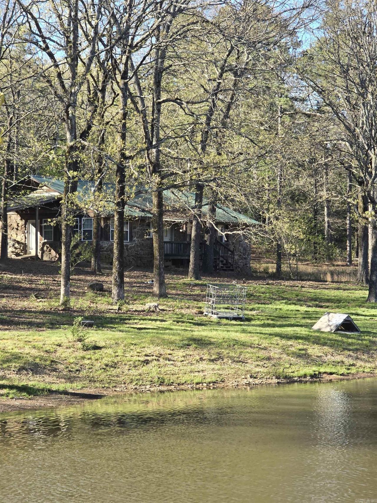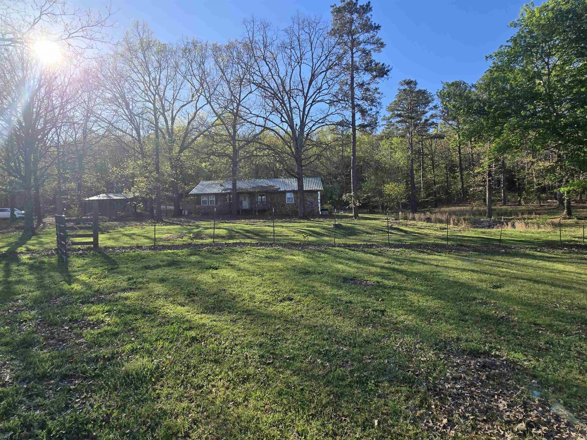 PEACEFUL! BEAUTIFUL! TRANQUIL! This homestead has so much to offer you will never want to leave home! The properties fully fenced 10 acres consists of a 3 bedroom 1.5 bath rock home, and a 1 bed, 1 bath guest house built in 2018. There are 5 wooded acres perfect for hunting, a fully stocked pond and cleared acreage for live stock. There are several outbuildings on the property that can be used for multiple purposes. The home is full of rustic appeal and fully equipped kitchen. There is a storm shelter, metal roof, rock fireplace, covered parking and so much more. Oh and did I say PEACEFUL!