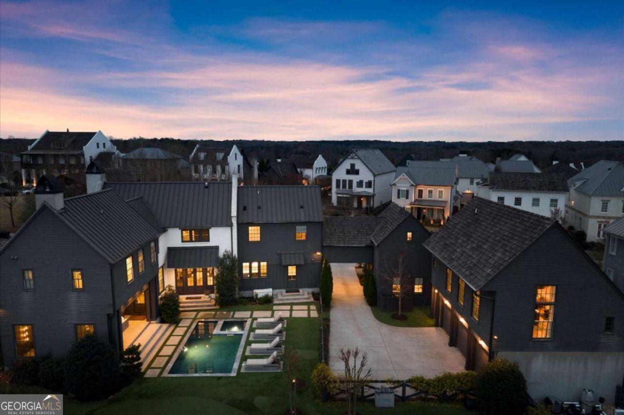 A rare opportunity in the heart of Vickery, this exceptional estate blends luxury living with a vibrant, family-friendly lifestyle-just steps from Vickery Village's restaurants, shops, parks, and community events. Designed for both everyday living and unforgettable entertaining, the home features light-filled living spaces, a chef's kitchen with Wolf and Sub-Zero appliances, and a beautifully renovated primary suite with a spa-style bath. Recent upgrades include fresh interior paint, updated lighting, enhanced storage, and a tankless water heater. The backyard is a private resort. Enjoy a heated saltwater pool and spa, putting green, waterfall feature, and a luxury covered patio with an automatic retractable porch screen, perfect for game days, movie nights, or relaxing evenings. A sauna and cold plunge add a true wellness retreat at home. Unique spaces make this home stand out, including a carriage house above the three-car garage ideal for a private office, studio, or hangout space, plus a separate guest house connected by a porte-cochere. Nestled in one of Forsyth County's most coveted communities, where beautifully maintained green spaces, neighborhood parks, and a charming golf-cart lifestyle create an exceptional setting for both families and neighbors to gather. With all furniture negotiable, this home offers a rare turnkey luxury lifestyle in Vickery.