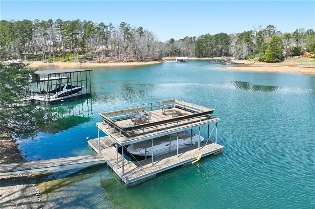 Stunning brick Lake Lanier home with year round deep water and a private single slip dock with party deck, ideally situated on 1.16 private acres in the sought-after Young Deer Harbour community. This exceptional 5-bedroom, 3.5-bath ranch offers a fully finished terrace level with over 5,700 square feet of beautifully designed living space and the privacy buyers seek in a premier Lake Lanier property. Inside, a grand double-door entry welcomes you with soaring cathedral and tray ceilings and rich hardwood flooring throughout the main level living areas. The light filled open concept layout offers an inviting flow perfect for everyday living and entertaining. The chef's kitchen serves as the heart of the home and features a large island, custom cabinetry, granite countertops, stainless steel KitchenAid appliances, a five-burner gas cooktop with pot filler, double ovens, warming drawer, and walk-in pantry and abundant prep space for hosting gatherings. The kitchen flows seamlessly into a warm keeping room with fireplace, the spacious family room with seasonal lake views, and an inviting dining area perfect for entertaining family and friends. The main level primary suite offers peaceful wooded views and a spa-inspired en suite with double vanities, soaking tub, and separate shower. Two generously sized secondary bedrooms share a well-appointed full bath, while a conveniently located powder room serves guests on the main level. The fully finished terrace level provides exceptional flexibility for guests or multi-generational living and includes a large family/game room, office or bedroom with floor-to-ceiling bookcases and fireplace, an additional bedroom with vaulted ceilings, a full bath, workshop, and abundant storage. Outdoor living is equally inviting with walk-out access to a covered patio and gentle path to the lake, a spacious screened porch overlooking the private backyard perfect for morning coffee or entertaining family and friends and a cozy fire pit area. A gentle golf-cart path leads to the water's edge, creating effortless access to Lake Lanier for boating, swimming, fishing, and enjoying unforgettable sunset evenings. Young Deer Harbour is an exceptional community offering amenities including a pool, tennis courts, and playground. The property extends to the water's edge, offering the option to selectively clear trees for enhanced lake views while preserving the home's peaceful, private setting. Ideally located in the highly acclaimed Forsyth County School District and just minutes from GA-400, downtown Cumming by car, just a short boat ride to Bald Ridge Marina, and popular lakefront dining. Properties offering this combination of acreage, year-round deep water, a private dock and convenience are increasingly rare on Lake Lanier, making this an exceptional opportunity to secure your own private retreat before summer on the lake begins.