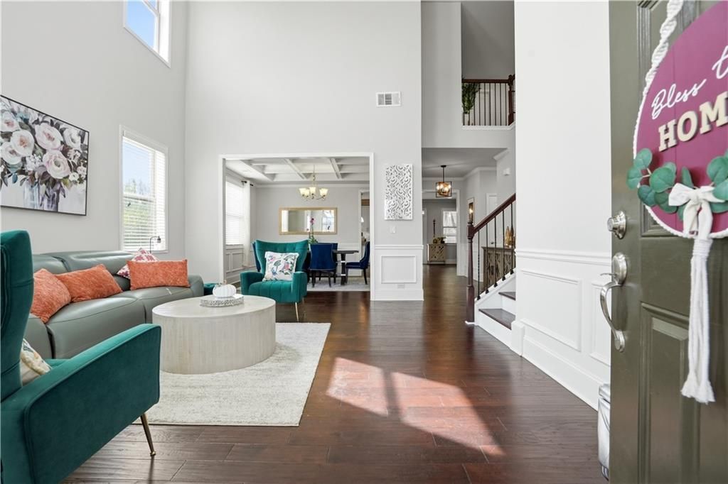Welcome to this beautifully maintained NORTH Facing single-family home located in the highly sought-after West Oaks subdivision. Nestled on a premium cul-de-sac lot backing to trees, this property offers exceptional privacy and a serene natural setting.This home has been thoughtfully updated with all carpet removed, featuring high-quality engineered wood flooring on the main level and durable upgraded flooring throughout the upper level, creating a clean, modern, and low-maintenance living environment.The main level showcases a stunning chef's kitchen with white cabinetry, quartz countertops, double ovens, a spacious pantry, and an oversized island ideal for entertaining. The kitchen opens to an expansive living room highlighted by a stone fireplace and custom built-ins. Additional main-level features include a guest bedroom, full bathroom, formal dining room, sitting room, and a functional mudroom.Upstairs, a generous loft provides flexible living space, while the oversized primary suite offers a luxurious bathroom and large walk-in closets with ample storage. Each secondary bedroom is conveniently connected to a bathroom, and the home provides abundant storage throughout.The exterior features a brick front with HardiPlank siding, a 3-car attached garage with EV charging setup, and a level, fenced backyard complete with a covered patio, professional landscaping, and an irrigation system?perfect for outdoor enjoyment.Residents of West Oaks enjoy resort-style amenities including a clubhouse, swimming pool, playground, tennis courts, and pickleball courts. Ideally located near top-rated Vickery schools, parks, the Big Creek Greenway, and popular destinations such as Vickery Village, The Collection at Forsyth, and Halcyon.More Pictures coming soon!