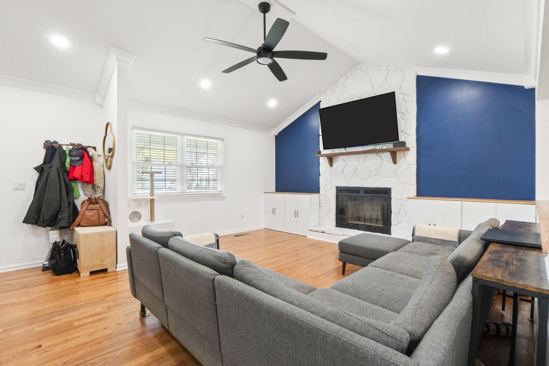 Welcome home to this beautifully designed 4-bedroom, 2.5-bath residence that blends modern style with everyday comfort. A quaint front porch sets the tone, inviting you inside to high ceilings and a bright, open layout filled with natural light. The living room features a cozy fireplace and flows seamlessly over beautiful flooring that extends throughout the home.The sleek, modern kitchen offers ample cabinetry and stainless steel appliances?perfect for both daily living and entertaining. Generously sized bedrooms provide comfortable retreats, while the spacious back patio overlooks a large, fenced-in backyard ideal for relaxing, pets, or outdoor gatherings. Enjoy total peace of mind with this meticulously maintained, move-in ready home. The seller has handled all major investments, including a newer HVAC system (2022 install) and a fully encapsulated crawl space (2024)?ensuring efficiency and comfort. Beautiful hardwood floors have been installed in the office, and the property is complete with a recently replaced back fence.Conveniently located just minutes from Publix, popular restaurants, and Lola Beans Coffee, this home offers the perfect combination of style, space, and location. Don't miss your opportunity to make it yours!