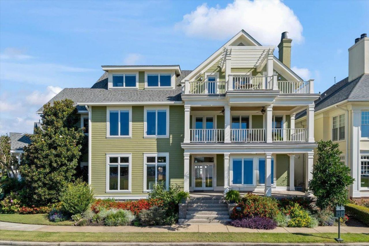 Open House Saturday from 12:000-2:00. Set along over 100ft of Mississippi River frontage, this one-owner custom home captures breathtaking views from nearly every room. Expansive windows fill the home with natural light, while an open-concept layout creates seamless flow for everyday living and entertaining. Three expansive balconies offer incredible vantage points to enjoy the water, sky, and unforgettable sunsets. The third floor provides flexible space for entertainment, art, and an in-home gym all overlooking the river. Outdoors, enjoy a stunning pool, pergola, lounge area, & generous green space, enhanced by a full irrigation system & a yard frequently recognized as Harbor Town's Yard of the Month. A rare 3-car garage adds exceptional convenience. Built to last with Hardy Plank siding and marine-grade plywood sheathing, this home blends thoughtful design, durability, & the beauty of true riverfront living?where every day ends with a breathtaking view.