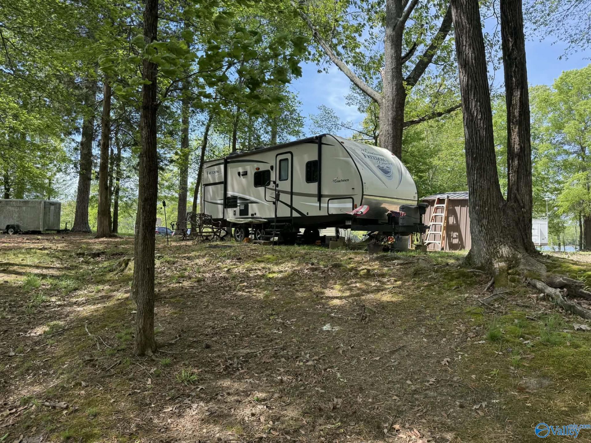 WATERFRONT RV lot on Weiss Lake! Rare opportunity to own a waterfront lot on breathtaking Weiss Lake, offered together with 23-foot Freedom Camper. Enjoy direct water access and stunning lake views - perfect for weekend getaways, seasonal living, a tiny home, or hosting family and friends. This lot is set up for RV use making it easy to start lake life right away. Enjoy this retreat while swinging on the swing, sitting around the fire pit, dock, picnicking, fishing, boating, kayaking, and relaxing in this beautiful setting. Don't miss your opportunity to see this gem today! Lot 9 is also for sale and owners would love to sell both together.